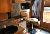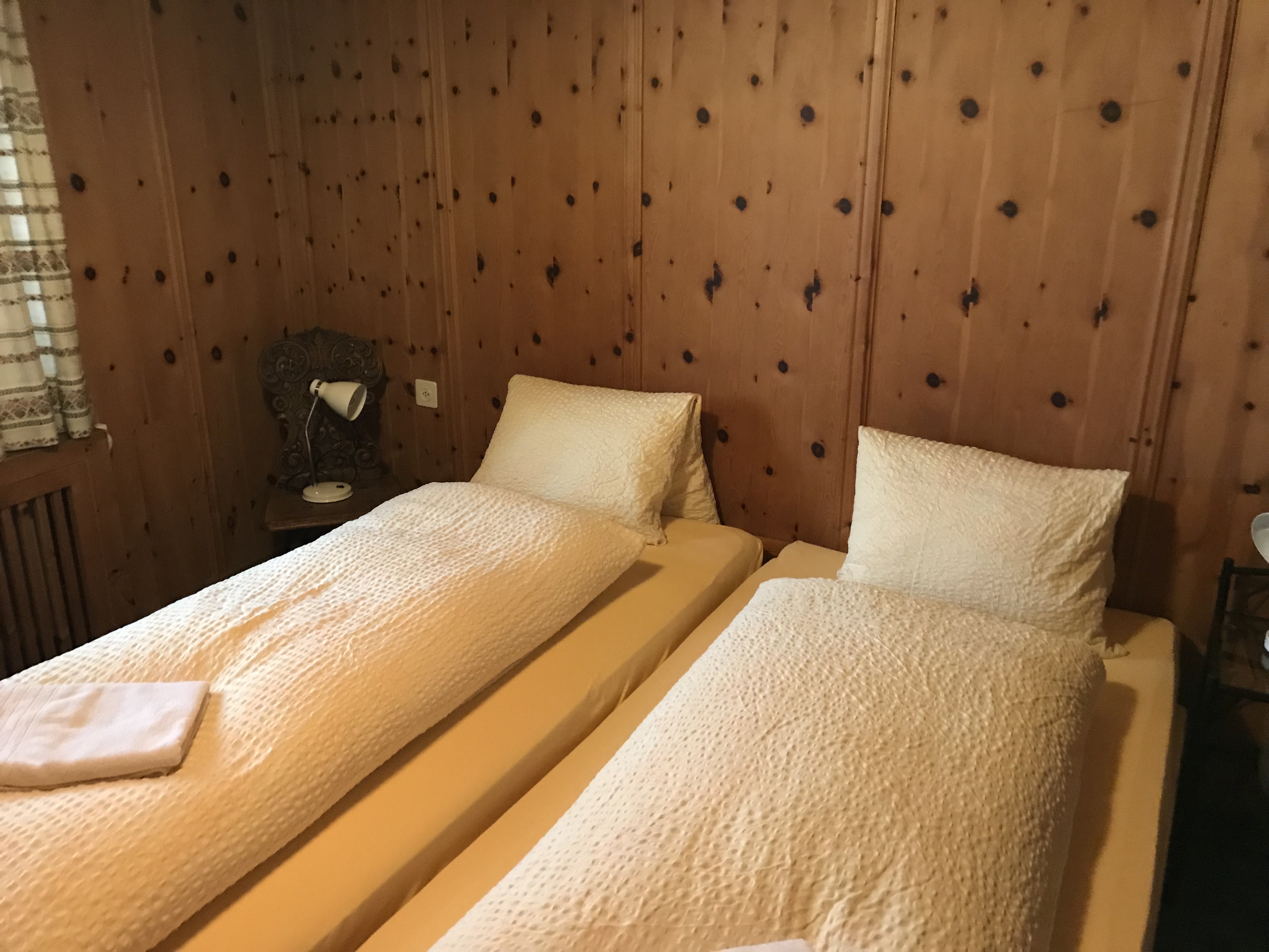 1-Zimmer Studio im Engadinerstil. Wohnküche mit Einzelbett für eine Person. Das Studio hat einen Balkon und ein Badezimmer mit Dusche/WC. Parterre. 12 m2. Für zwei weitere Personen hat es ein separates Doppel-Zimmer mit Bad/WC im Korridor gegenüber von Studio Nr. 10. Alle Zimmer haben SAT-TV und W-Lan.