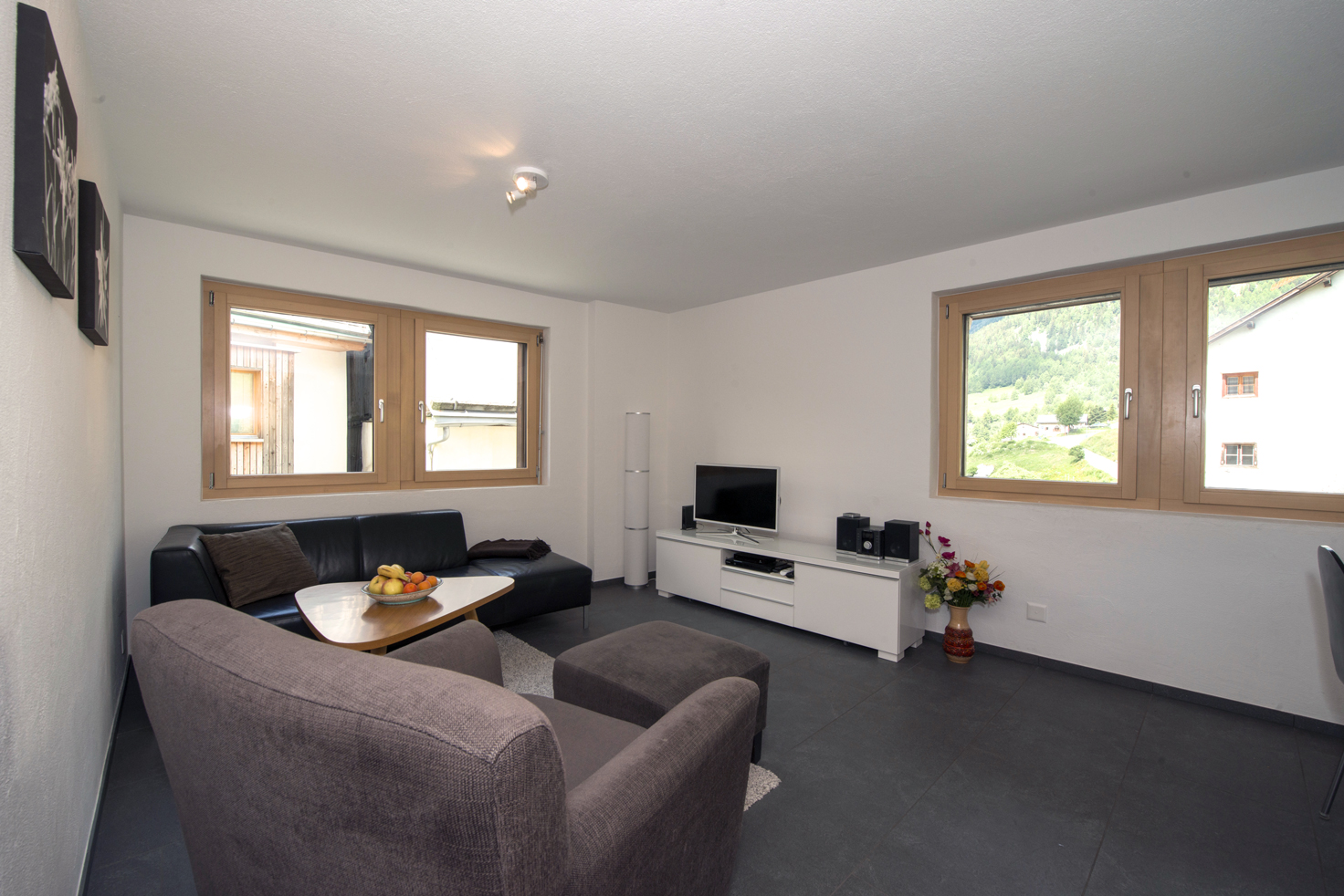 Herzlich willkommen in Guarda! Die Ferienwohnung liegt im unteren Teil des Schellenursli-Dorfes. Die 3 1/2 Zimmer-Wohnung (70 m2) verfügt über einen zusammenhängenden Wohn- und Essbereich mit Küche, zwei Schlafzimmer (eines für Erwachsene, eines für Kinder/Erwachsene), ein Bad mit WC und einen Gartensitzplatz mit schönem Blick auf Guarda Pitschen, die Wiesen und die Berge. Diese Wohnung eignet sich auch für Familien: grössere Kinder schlafen im eigenen Zimmer mit Kajütenbett (Bettlänge: 1.85m). Für kleinere Kinder kann auf Wunsch ein Kinderbett in die Wohnung gestellt werden. Die ruhig gelegene Wohnung ist im ersten Geschoss der Chasa Tablà. Der Dorfladen, die Post und das Tourismusbüro liegen gleich um die Ecke. Geniessen Sie hier Ihre unvergesslichen Ferien!