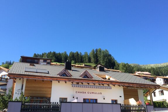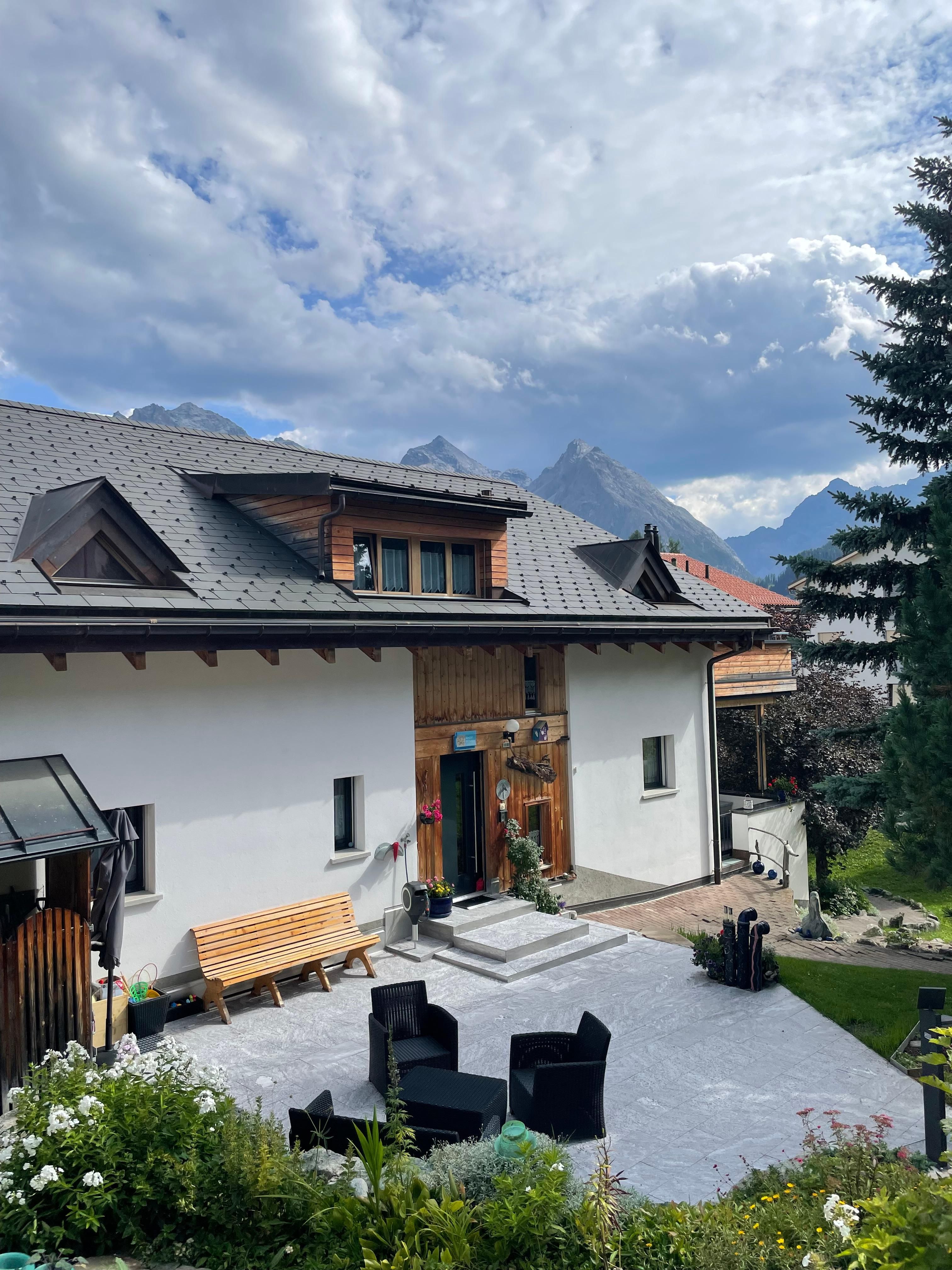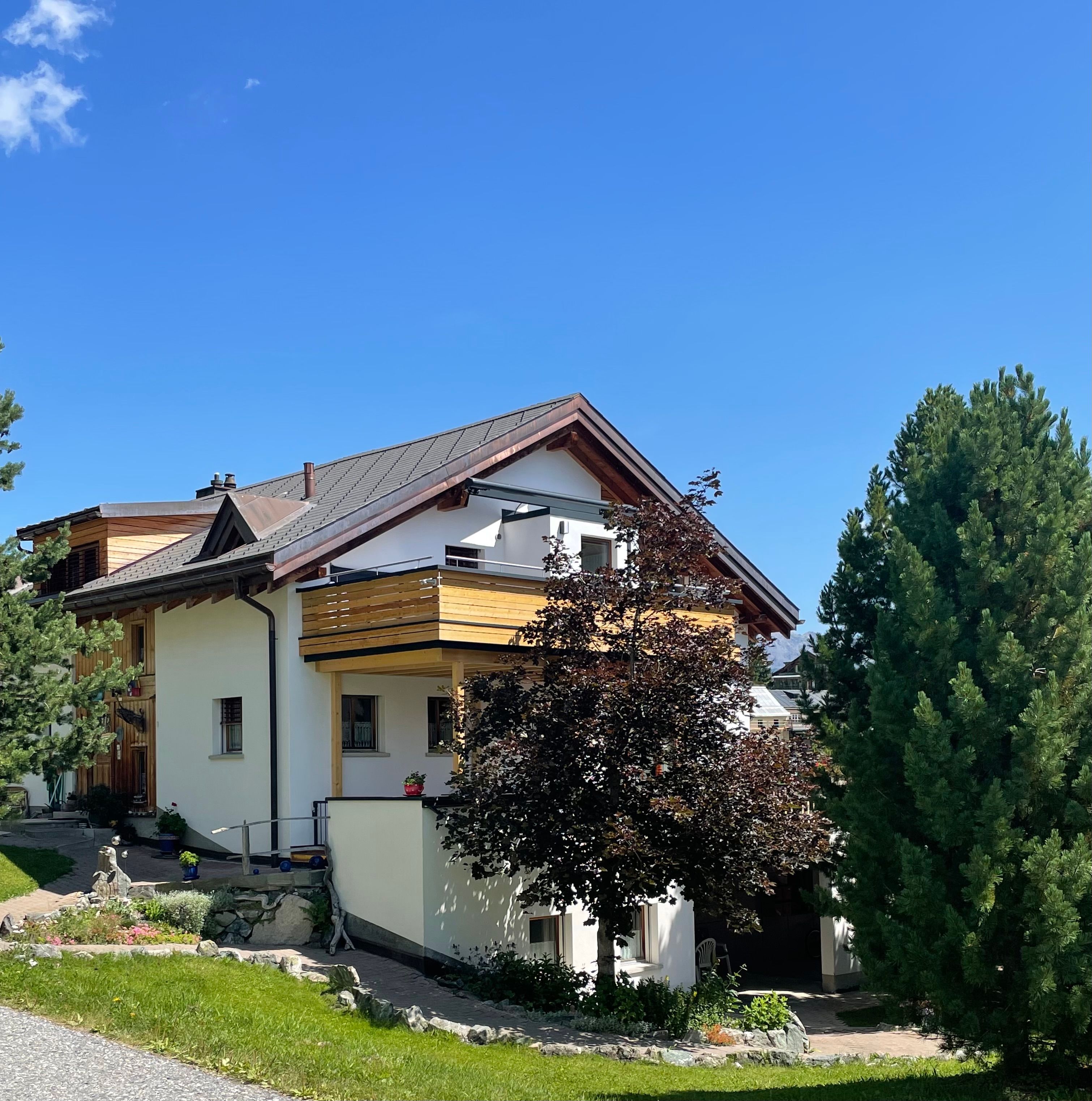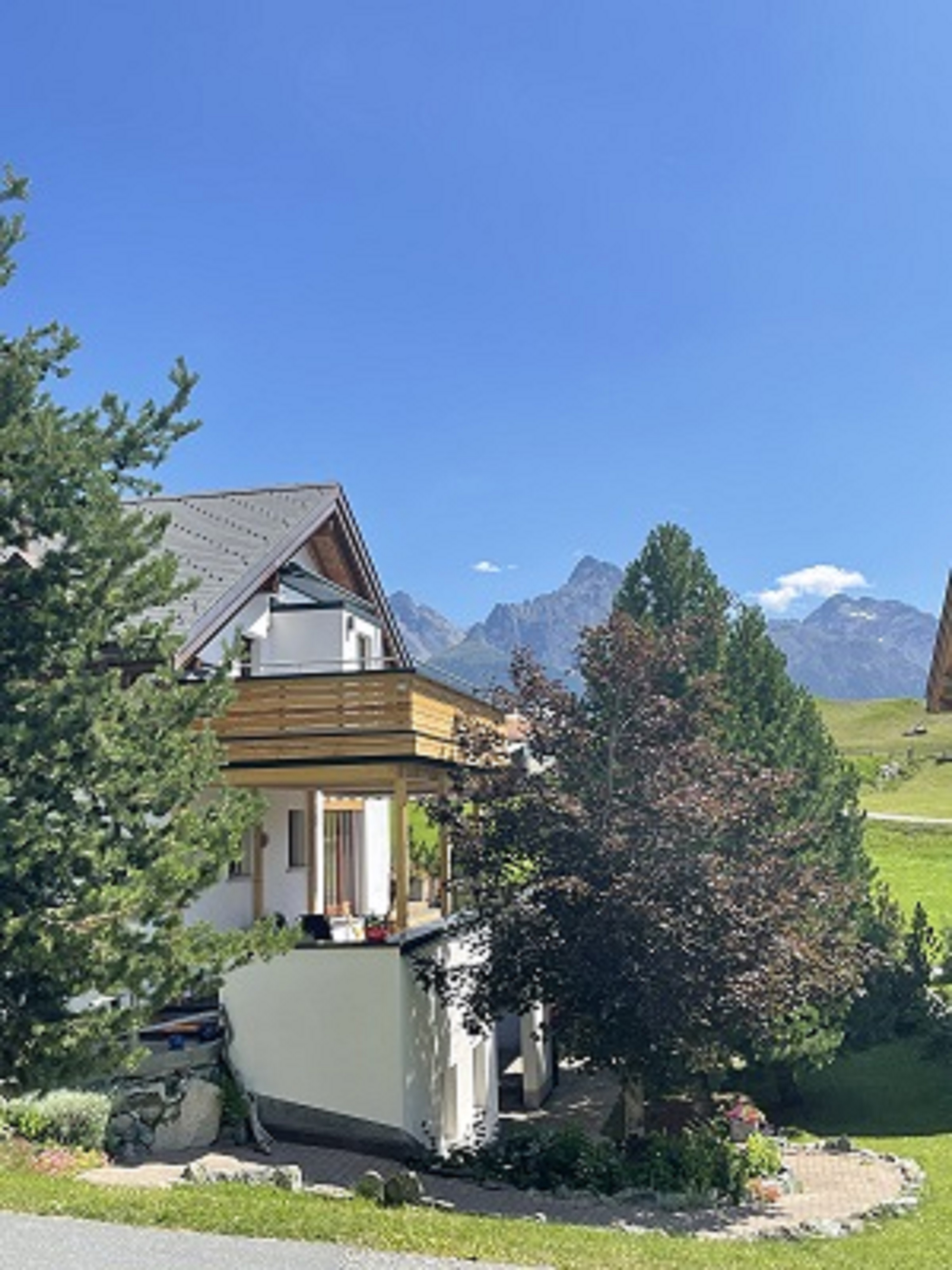 Schönes, gemütliches Mehrfamilienhaus Chasa Cumulus der Familie Erni im Ortsteil Ftan-Grond. Wir bieten Ihnen eine schöne, gepflegte und sonnige 3 1/2 Zimmer-Dachwohnung zum Wohlfühlen. Die Wohnung verfügt über zwei Panoramadachfenster mit Morgensonne und einer Terrasse (Süd-West) mit herrlicher Nachmittagssonne. Geniessen Sie die wunderschöne Aussicht der Unterengadiner Bergwelt, den Sonnenschein oder die schöne Schneelandschaft. Das Kinderparadies Sainas (bis ca. Mitte März offen) mit der Schneesportschule und die Loipe Hochalpines Institut Ftan(Langlaufloipe) , befinden sich direkt in unmittelbarer Nähe. In ca.10-12 Gehminuten erreichen Sie die 4er Sesselbahn Ftan-Prui, den neuen Badesee Lai da Padnal,