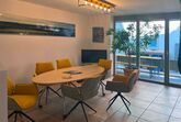 Unser Cityhouse bietet 3 perfekt ausgestattete, separate Schlaf- und Arbeitszimmer mit 140cm breitem Komfortbett, Arbesstplatz mit Office-Desk, allen Anschlüssen für PC, Laptop, USB und Highspeed-W-Lan und Flatscreen. Eine luxuriös ausgestattete Wohnküche mit sperrten Kühl- Und Gefrierfächern für jedes Apartment und allen Features von Mikrowelle über Geschirrspüler bis Induktionsherd, dazu eine große Esstischgruppe und Zugang zur überdachten Terrasse mit Innenhof. Ein großzügiges Bad mit Dusche, Doppelwaschtisch und Spiegelschränken, sowie einen höchst komfortablen Wohnraum mit Balkon, ultra Flatscreen, Ledercouches und eine Lümmel-Bettcouch, beide mit zusätzlicher Schlaffunktion, ideal, wenn in der Gruppe Kinder mitreisen. Ideal für Familientreffen, Fahrradgruppen oder Geschäftsreisende im Team für mehrere Wochen.