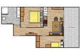 Gemütliches Familienappartement (45 m²) im Erdgeschoss für 2 bis 4 Personen.