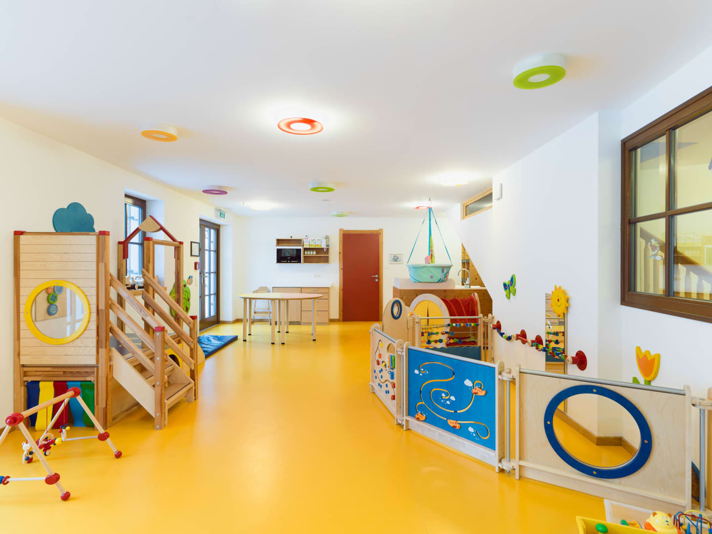 • NATUR KINDERHOF auf über 1.00 m² Spielfläche über zwei Ebenen mit betreutem Außenbereich, Eltern-Kindbereich, separatem Baby- und Kleinkindbereich und natürlicher, biologischer Bauweise und Aussattung ganz ohne Kunststoffe