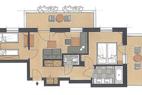 Elternschlafzimmer, Kinderzimmer mit Einzel- und Stockbett, seperater Wohnraum, WLAN, Telefon mit integrierter Babyphonanlage, Safe, TV mit Sk, Badezimmer mit Doppelwaschbecken, Badewanne und Dusche, Kosmetikspiegel, Fön, separates WC, Kühlschrank, Wasserkocher, Mikrowelle, zwei Balkone.
