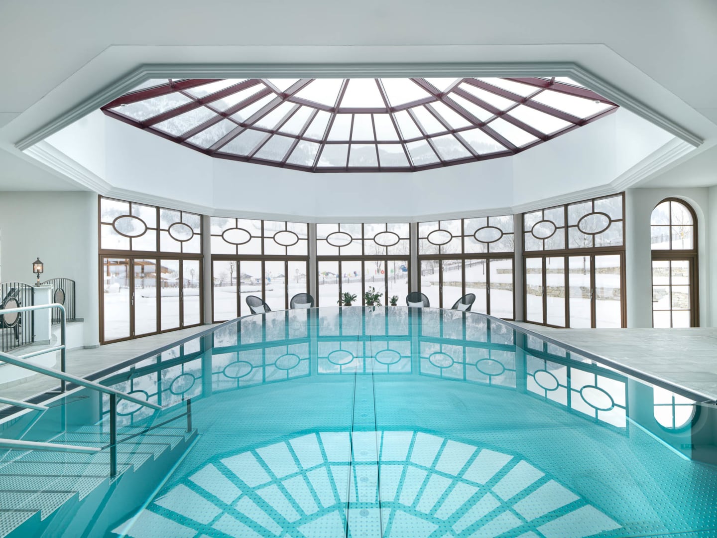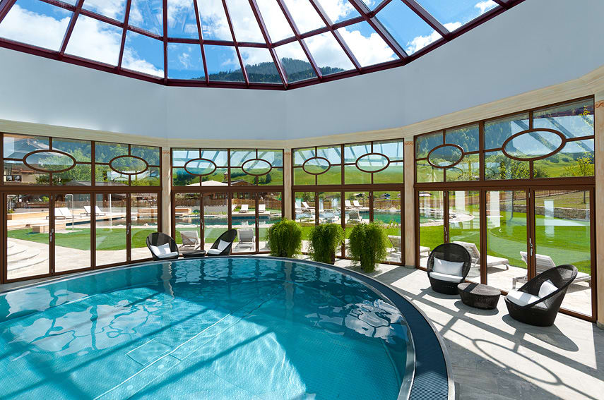 • NATUR SPA auf 1.200 m² mit 25 Meter Außenpool, Wasserrutsche, diversen Saunen und edlen Ruheräumen sowie Bergsee mit Gebirgswasser