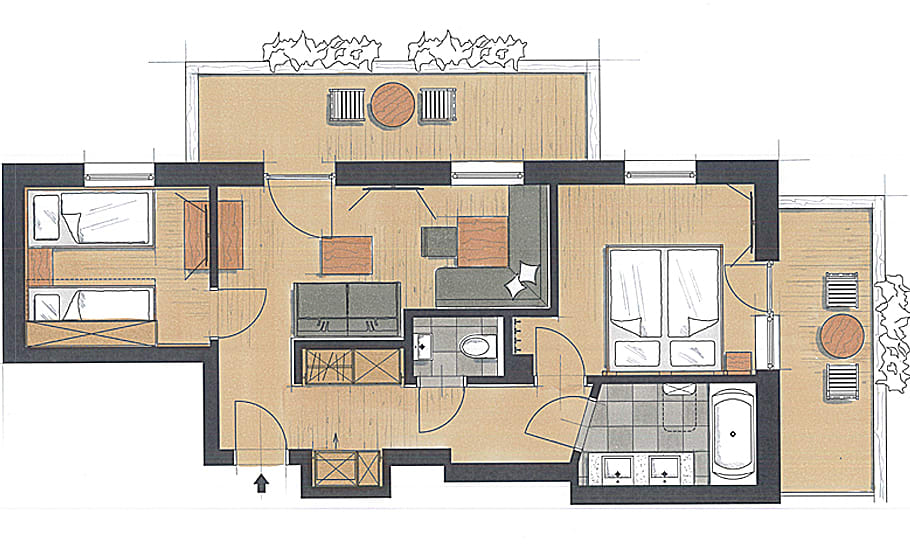 • Heimische und natürliche Rohstoffe in allen Suiten und Bauten