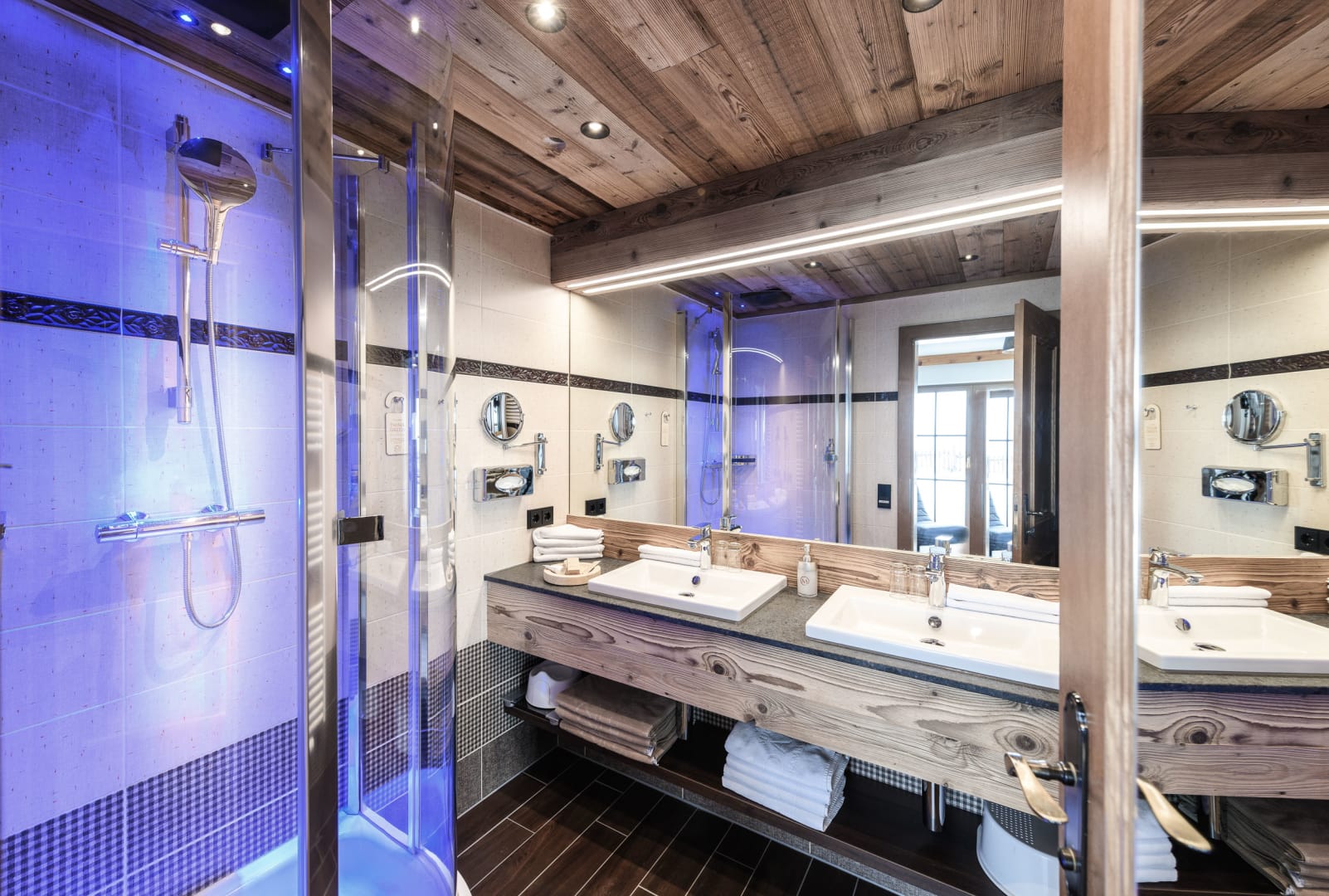 • NATUR SPA auf 1.200 m² mit 25 Meter Außenpool, Wasserrutsche, diversen Saunen und edlen Ruheräumen sowie Bergsee mit Gebirgswasser