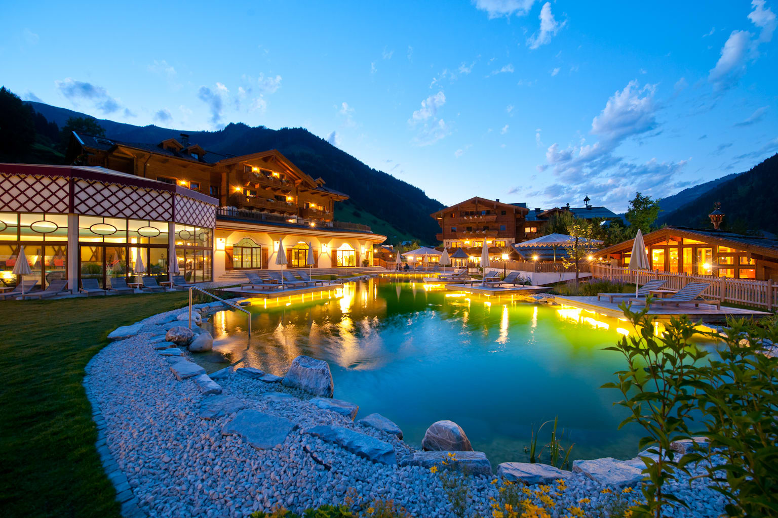 • NATUR SPA auf 1.200 m² mit 25 Meter Außenpool, Wasserrutsche, diversen Saunen und edlen Ruheräumen sowie Bergsee mit Gebirgswasser