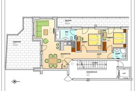 Größe des Apartment ca. 70 m². Dieses geräumige Apartment verfügt über eine voll ausgestattete Küche mit Spülmaschine uvm. Es bietet Ihnen eine Sitzecke, Sat-TV, WLAN, 2 Schlafzimmer mit je einem Doppelbett, 2 Bäder mit einer Badewanne/WC oder Dusche/WC und eine Südterrasse.