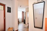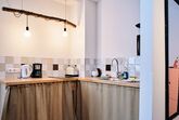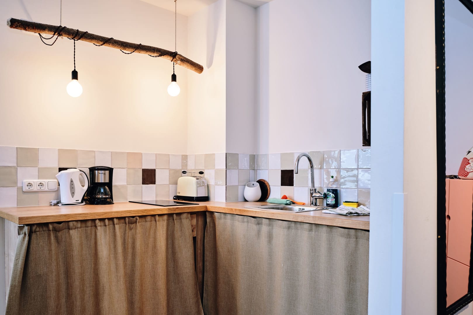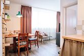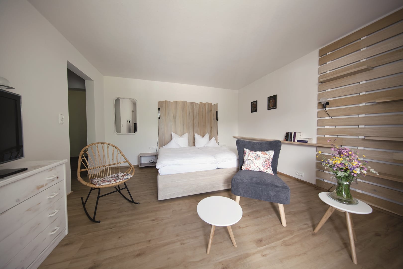 Studio mit Terrasse und Bergblick Willkommen in unserem gemütlichen Studio im Erdgeschoss, das Ihnen einen direkten Zugang zur Terrasse bietet! Genießen Sie entspannte Stunden mit herrlichem Blick auf die umliegende Berglandschaft. Das Studio ist ideal für Paare, kleine Familien oder Reisende mit Hund. Das Studio verfügt über ein Schlafzimmer mit einem komfortablen Kingsize-Doppelbett und einen separaten Wohnbereich mit einer Schlafcouch, die bequem Platz für einen Erwachsenen oder zwei Kinder bietet. Eine gemütliche Sitzecke lädt zum Verweilen ein. Die Kochnische ist voll ausgestattet mit einer Spülmaschine, einer Mikrowelle, einem Kühlschrank, einer Kaffeemaschine, einem Wasserkocher sowie allen notwendigen Kochutensilien und Geschirr. So können Sie sich problemlos selbst versorgen. Das sehr geräumige Badezimmer bietet eine begehbare Dusche, ein WC und einen Haarfön. Selbstverständlich stellen wir Ihnen Handtücher und Bettwäsche kostenfrei zur Verfügung. Zur weiteren Ausstattung gehören ein Flachbildfernseher, ein Safe für Ihre Wertsachen und kostenfreies WLAN. Haustiere sind bei uns herzlich willkommen!