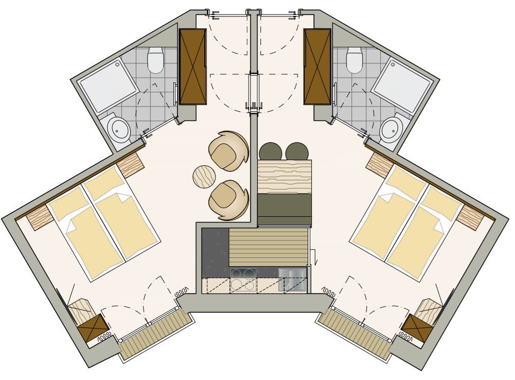 • 2 Schlafzimmern (mit Verbindungstüre)