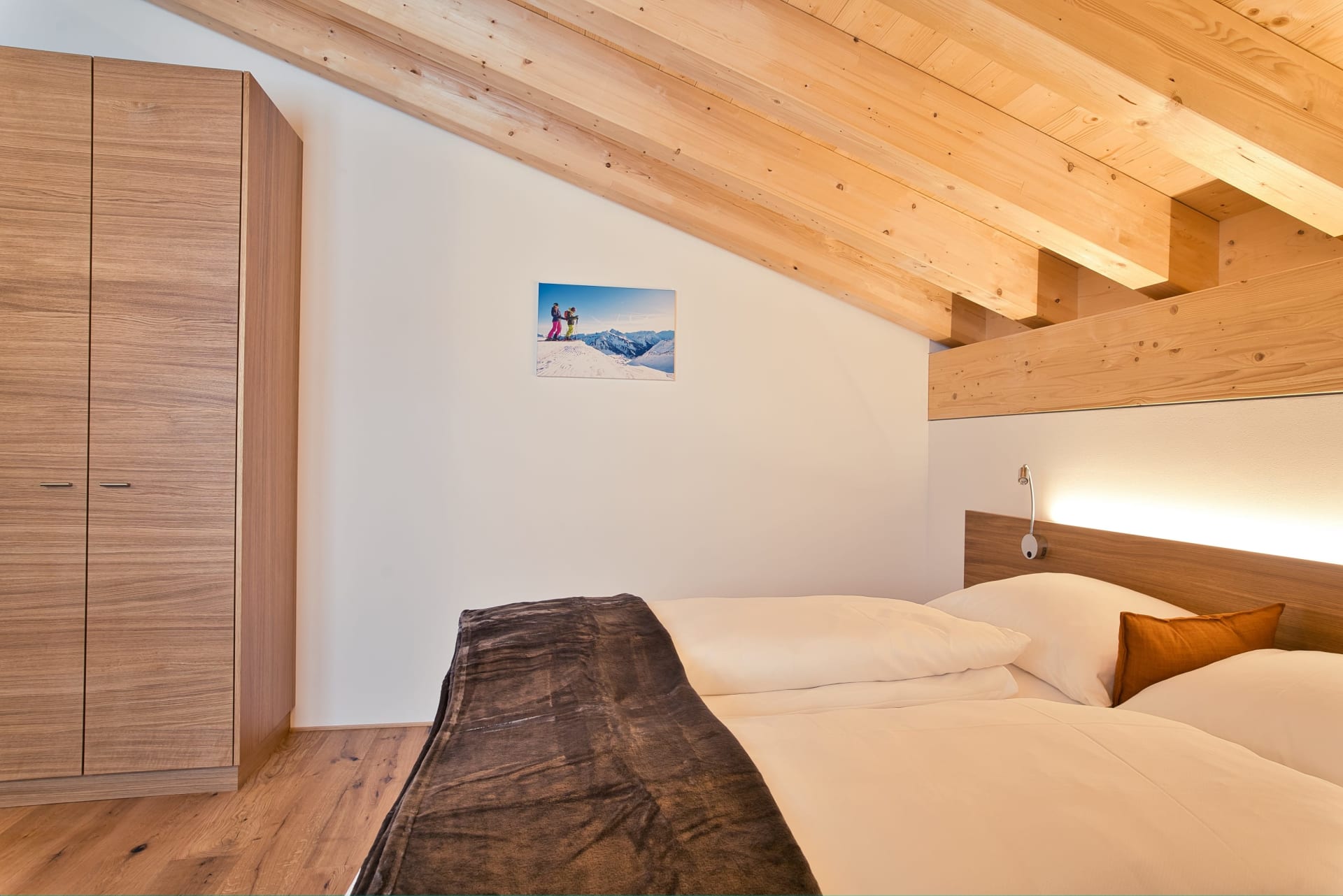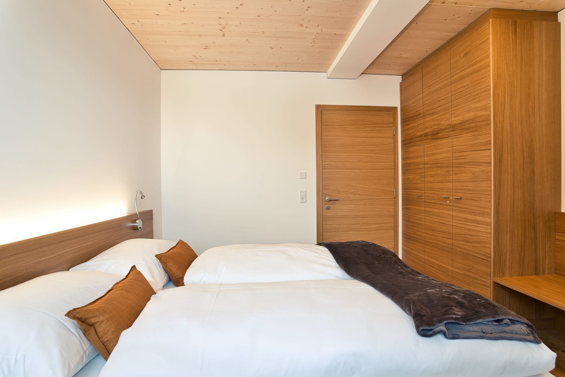 Die Ferienwohnungen des Typs 1 befinden sich im 1. und 2. Obergeschoss (Nord/Ost) mit jeweils 1 Schlafzimmer mit Doppelbett, 1 Schlafzimmer mit Stockbett, DU/WC, Veranda mit 6 m² und einem komplett eingerichteten Wohn-/Essbereich sowie einer zusätzlichen Ausziehcouch. 2 TVs und eine Garderobe. (max. 6 Personen). Gratis W-Lan im ganzen Haus.
