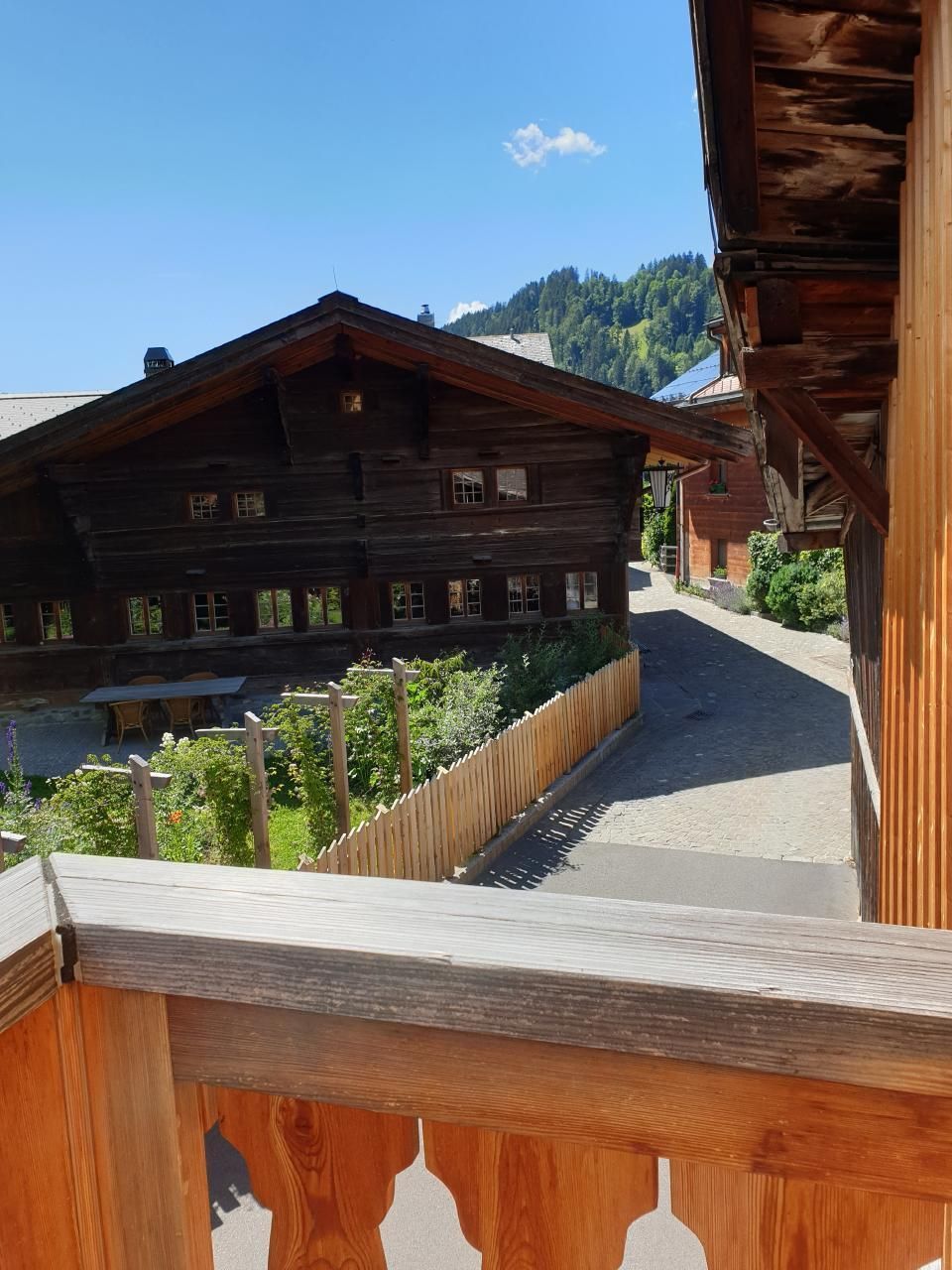 Das Chalet liegt ideal in einer herrlichen Kopfsteinpflasterstraße, die nur für Anwohner mit dem Auto erreichbar ist.