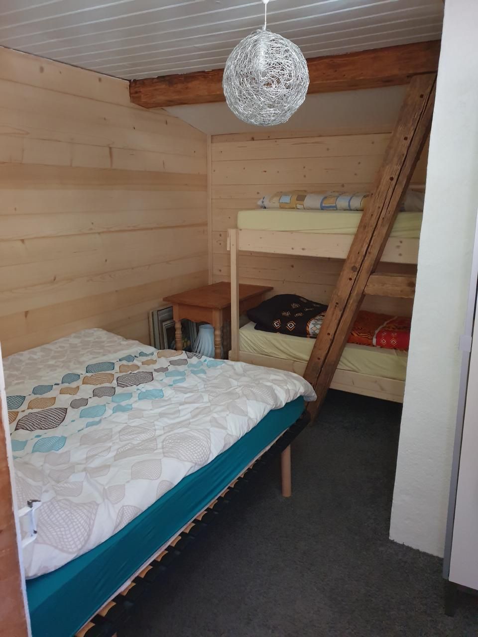 - Zweitegeschoss: zwei Schlafzimmer mit 90x200 Etagenbetten und ein Schlafzimmer mit einem großen 160x200 Bett.
