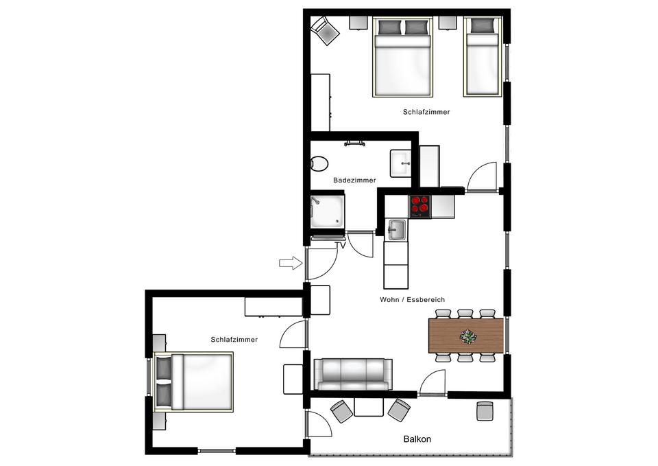 Appartements Rudigier - Appartement Nr. 3 mit 2 Schlafräumen, Betten 1-5