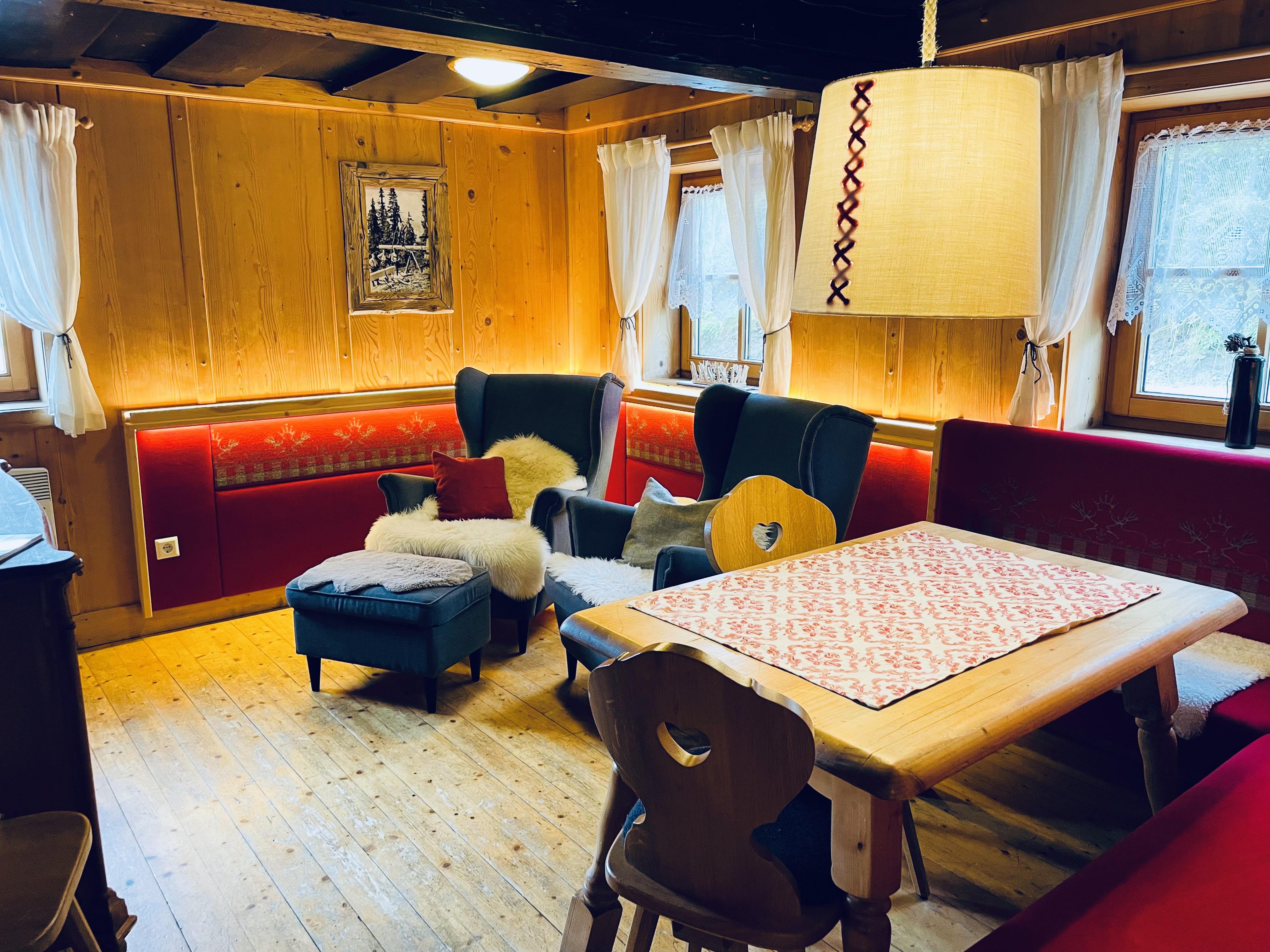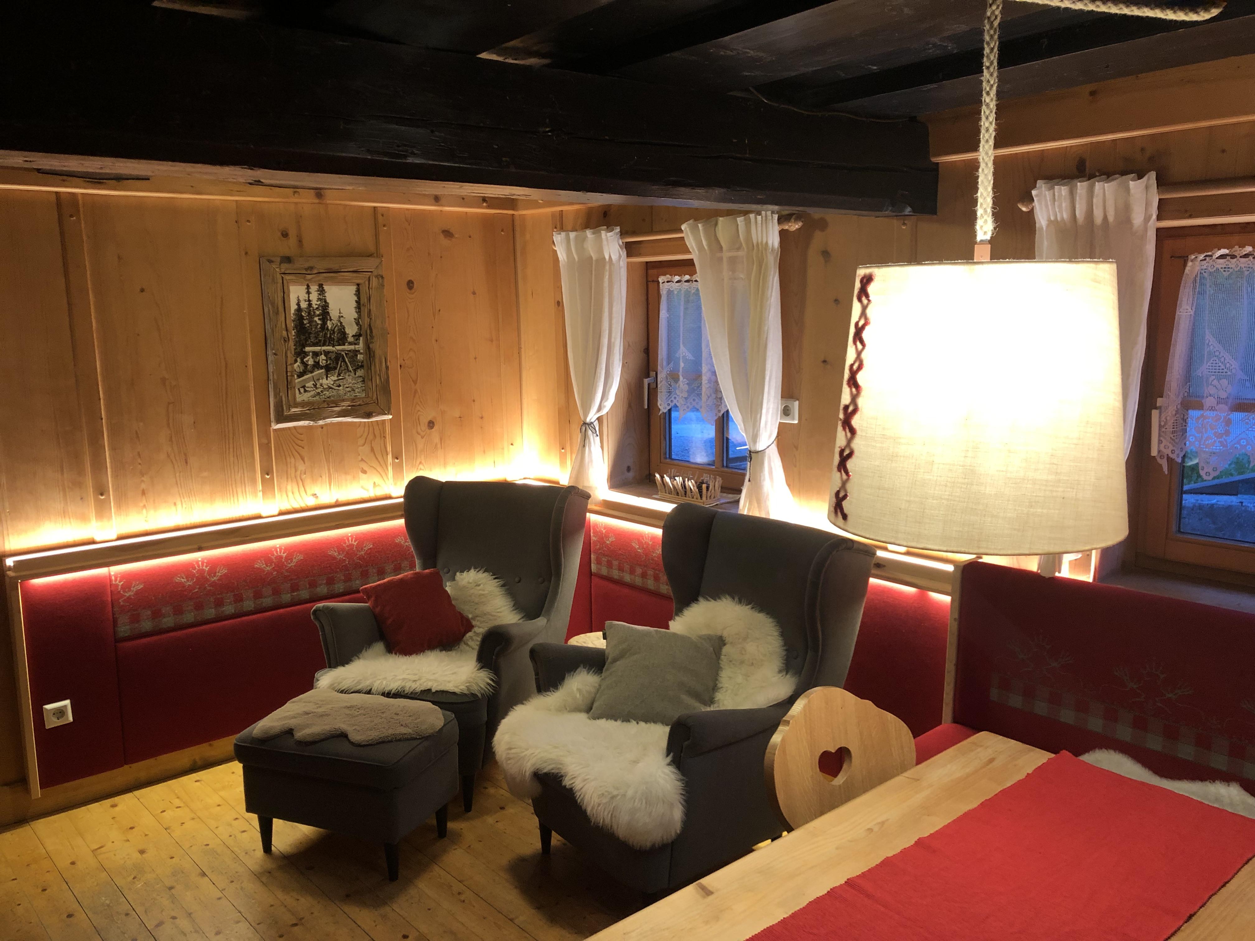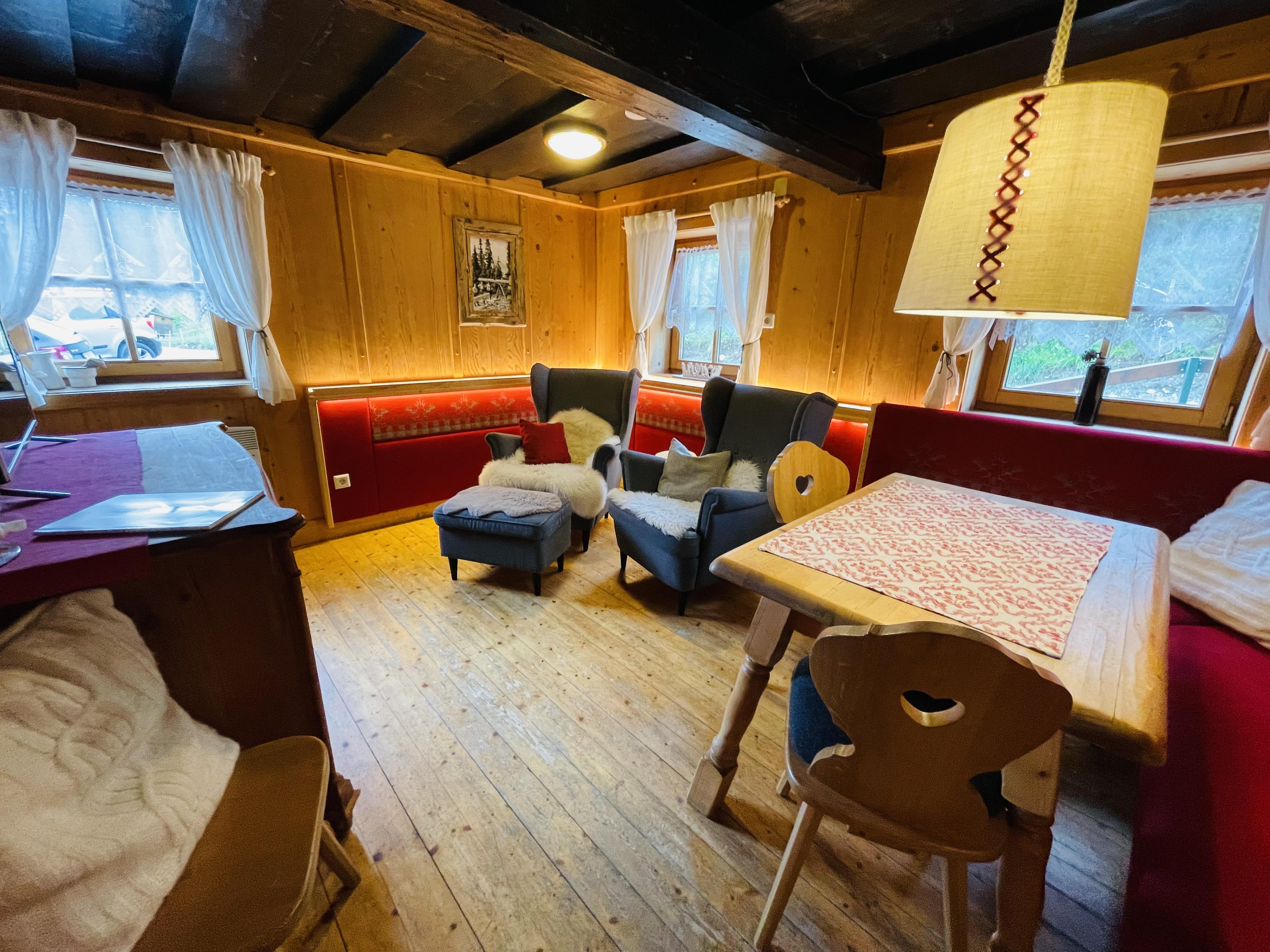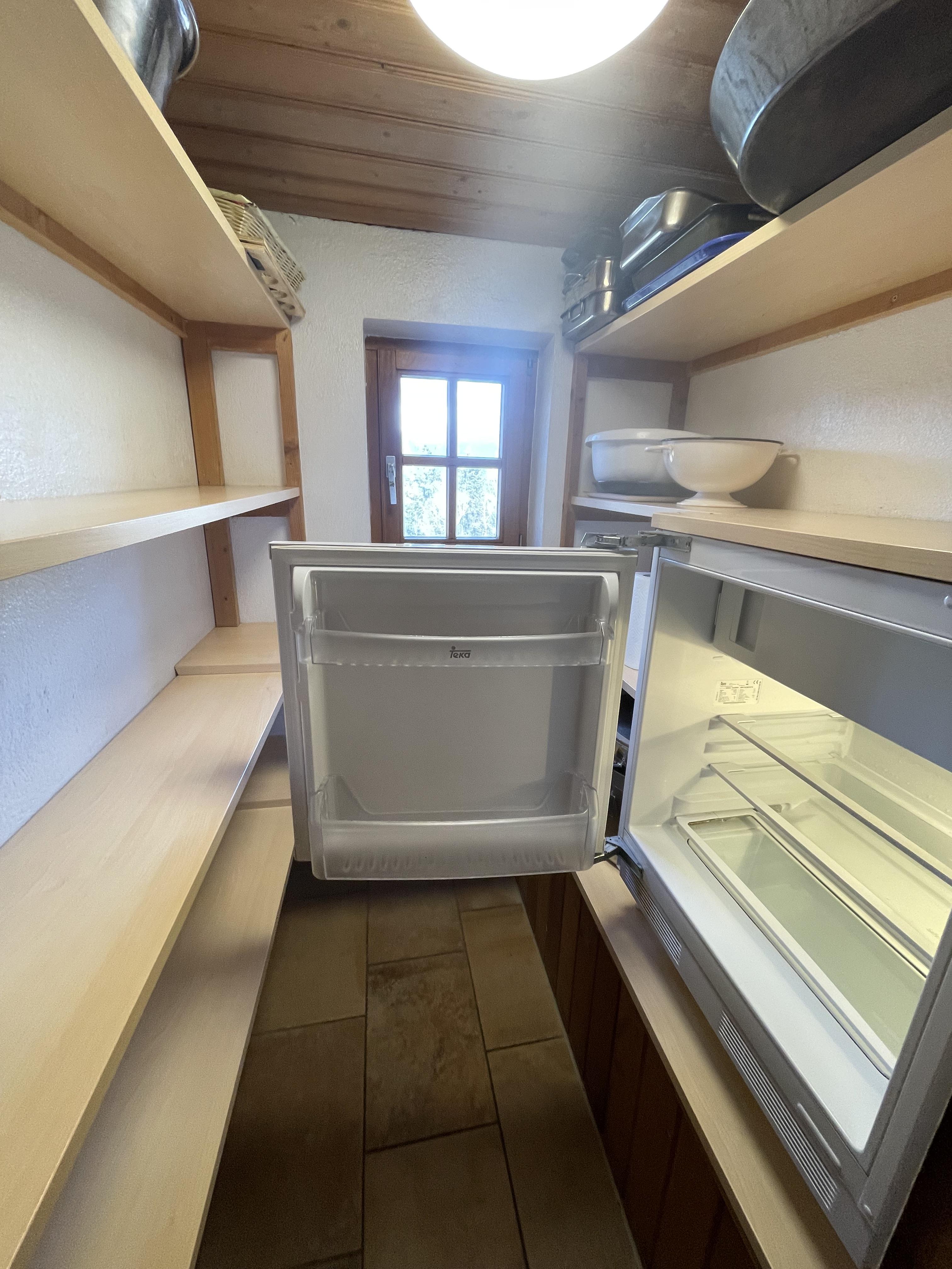Im Erdgeschoss: eine voll ausgestattete Küche, extra Speisekammer, eine großen Stube, eine kleine Stube inkl. TV, einem Vorraum, 2 seperaten Toiletten, 1 Abstellraum (Müll), einen mit Code verschließbaren Schiraum, Garderobe und Schuhtrockner