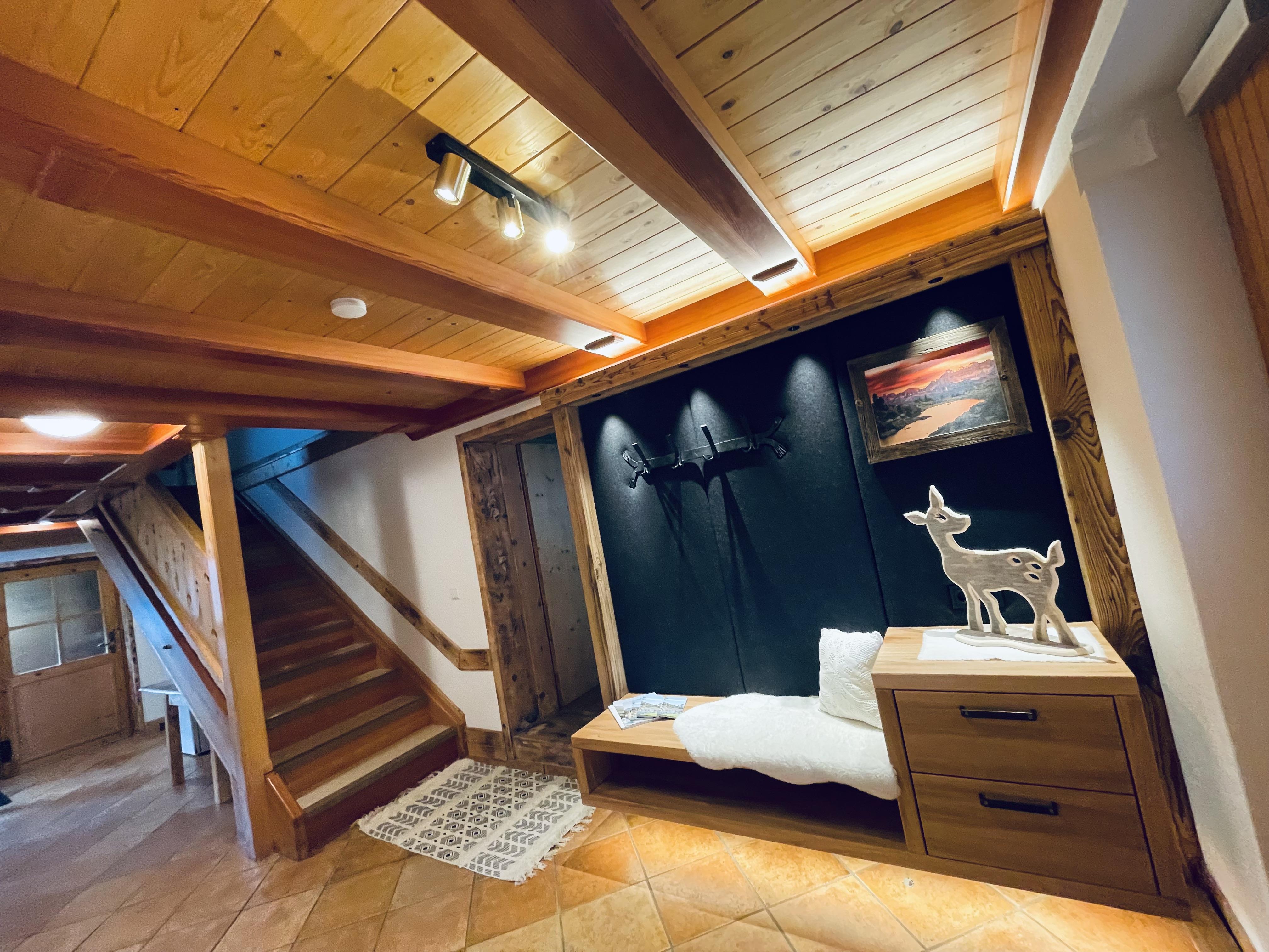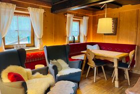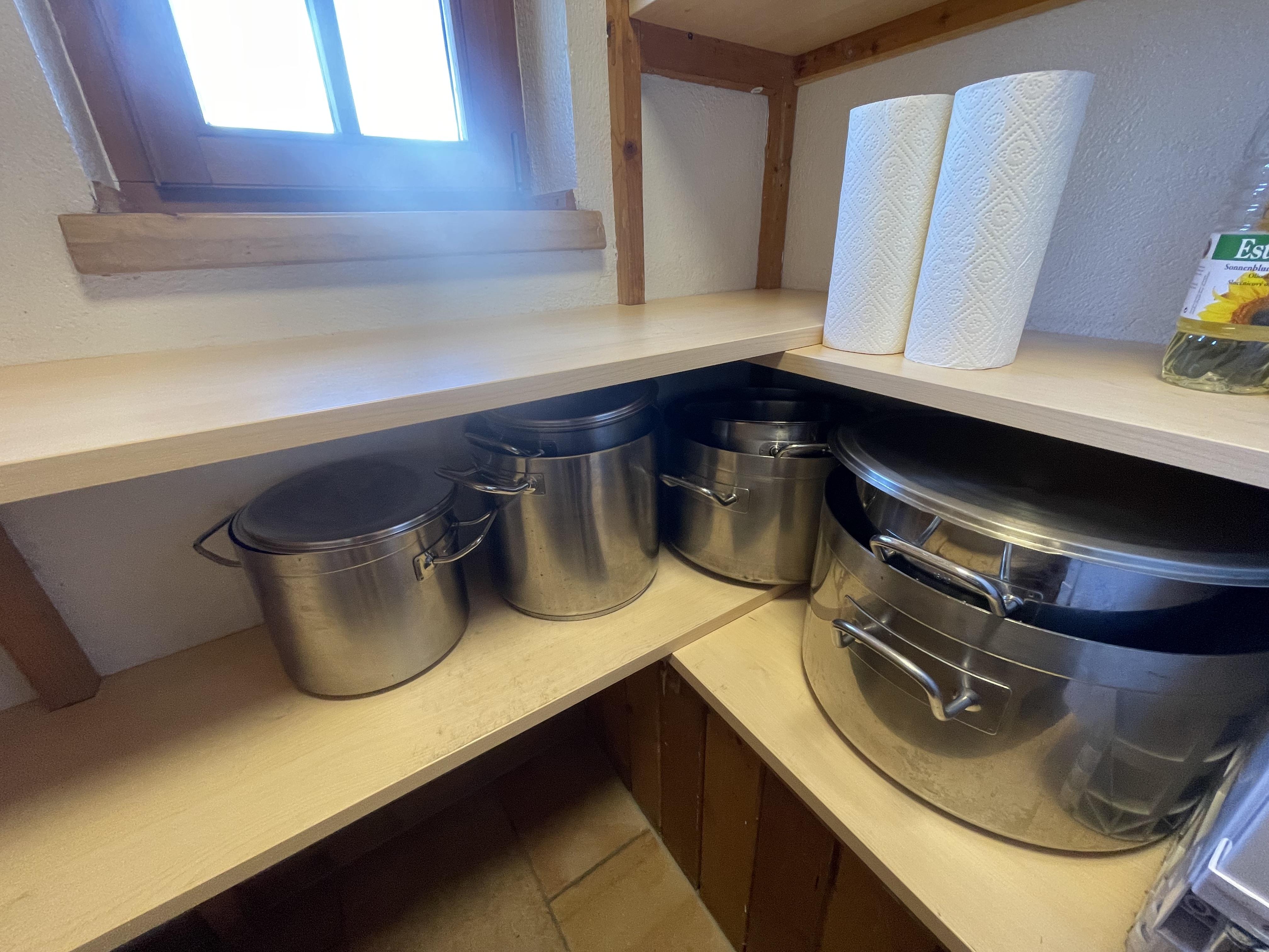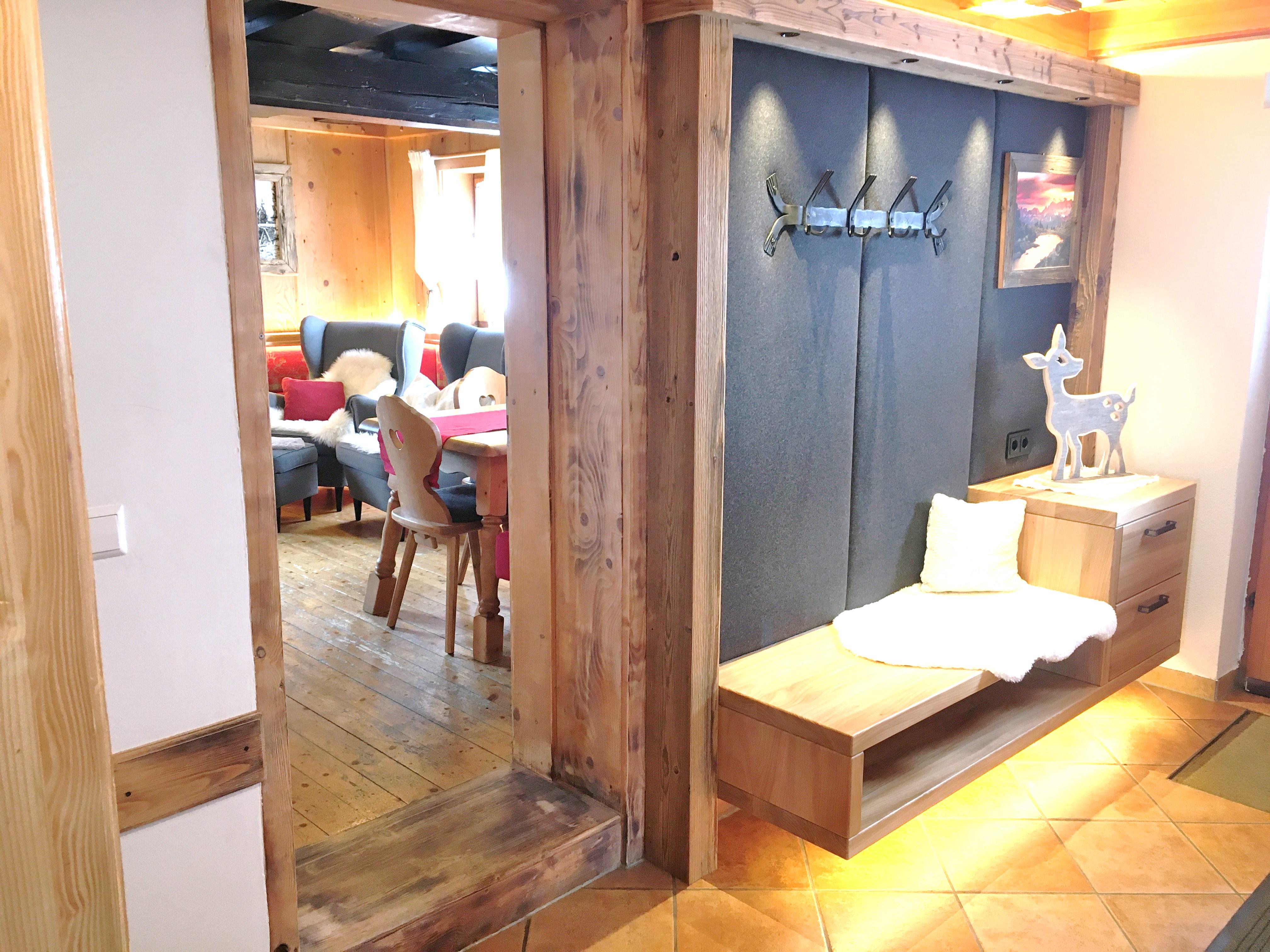 Im Erdgeschoss: eine voll ausgestattete Küche, extra Speisekammer, eine großen Stube, eine kleine Stube inkl. TV, einem Vorraum, 2 seperaten Toiletten, 1 Abstellraum (Müll), einen mit Code verschließbaren Schiraum, Garderobe und Schuhtrockner