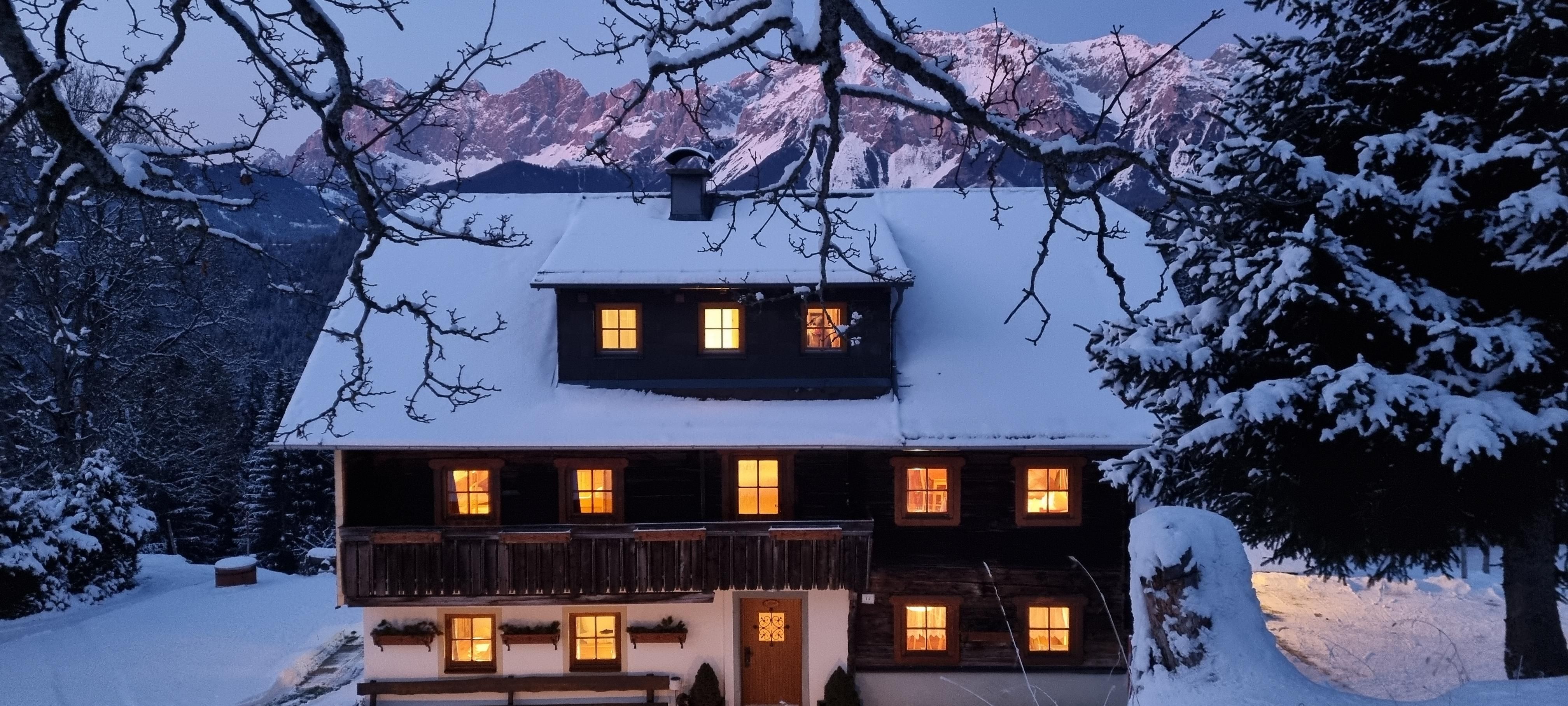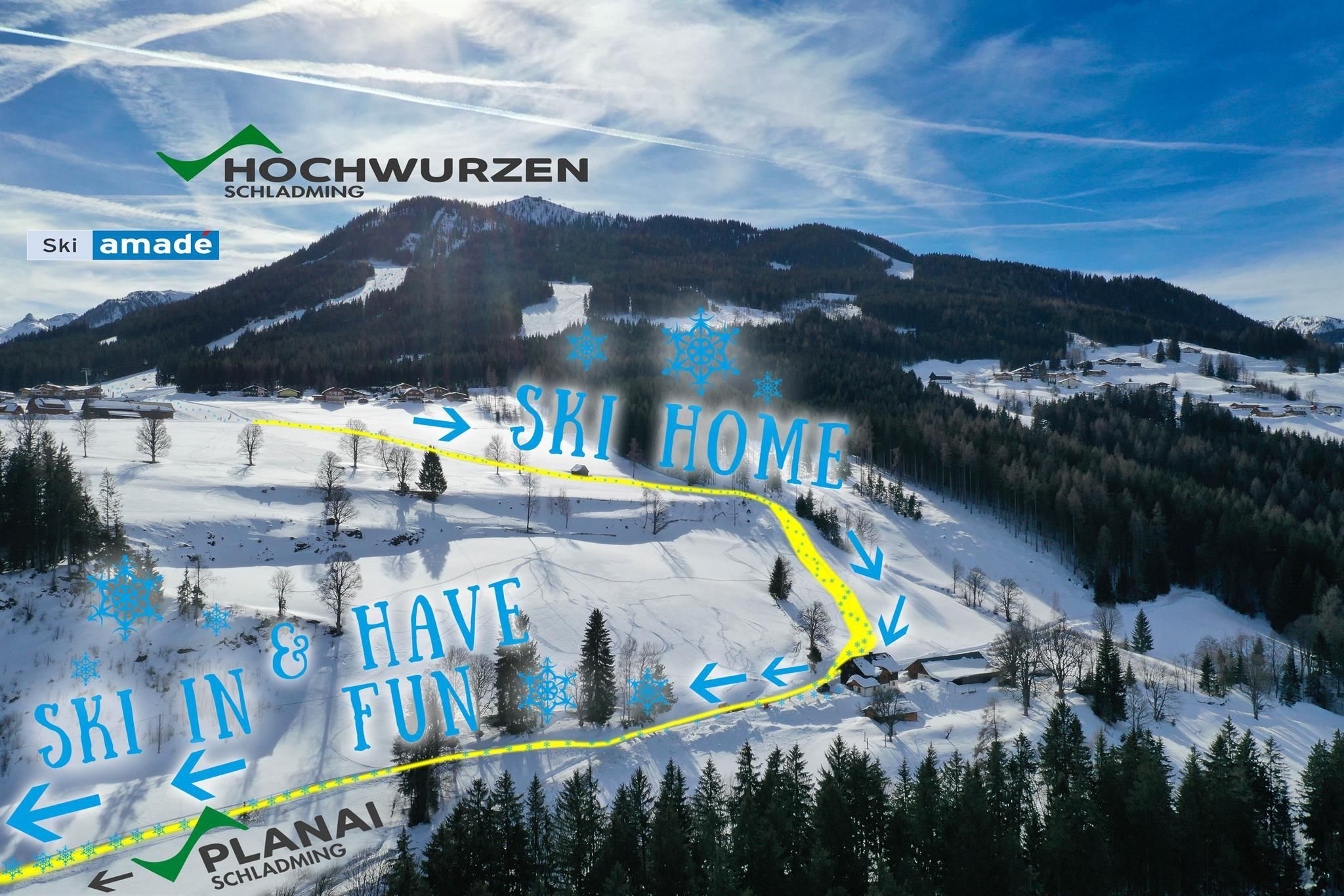 Bei optimaler Schneelage kann man direkt vor dem Haus ins Skivergnügen der Schladminger 4-Berge-Skischaukel einsteigen, sie verbindet Hauser Kaibling, Planai, Hochwurzen und Reiteralm zu einem durchgehenden Skivergnügen mit 123 sorgfältig präparierten Pistenkilometern.