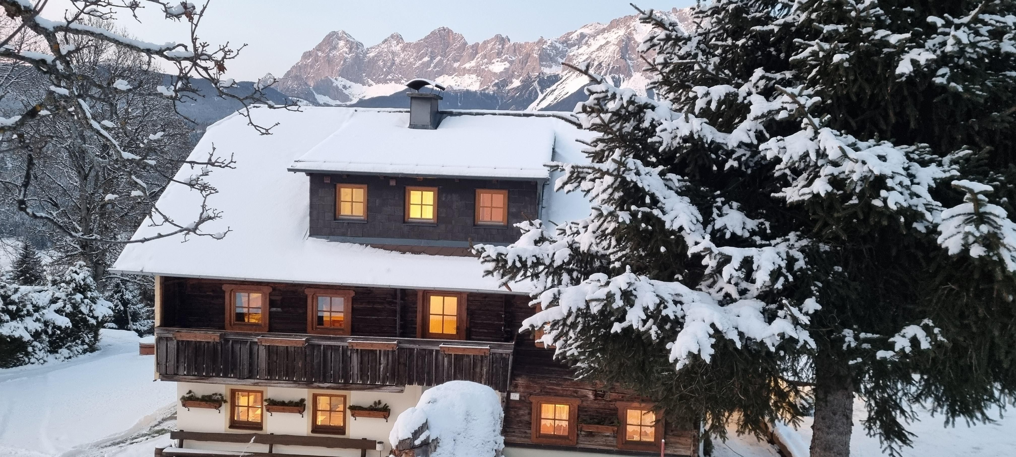 DEIN SELBSTVERSORGERHAUS IN DEN BERGEN Abseits vom Trubel, auf 1.016 m Seehöhe, umgeben von Wiesen, Wäldern und mächtigen Ahornbäumenbefindet sich das 300 Jahre alte Bauernhaus Herisch. Rustikal und doch in die Zeit geholt bietet unser Ferienhaus Platz für bis zu 23 Personen und ist der perfekte Ausgangspunkt für unendlich viele Möglichkeiten zu jeder Jahreszeit! Hier kann man echte Momente mit der Familie, Freunden, Geschäftspartnern oder Kollegen erleben, zur Ruhe kommen, sich austoben oder nur die herrlichen Panoramablicke zum Dachstein und die umliegende Bergwelt genießen.Willkommen im Herisch. Willkommen bei uns. Willkommen bei Familie Tritscher.