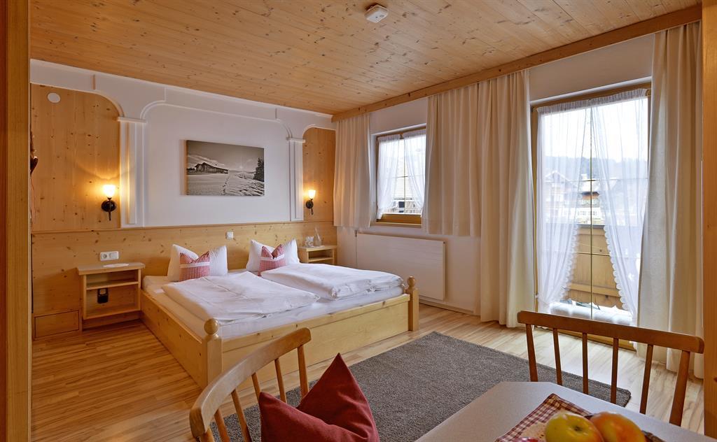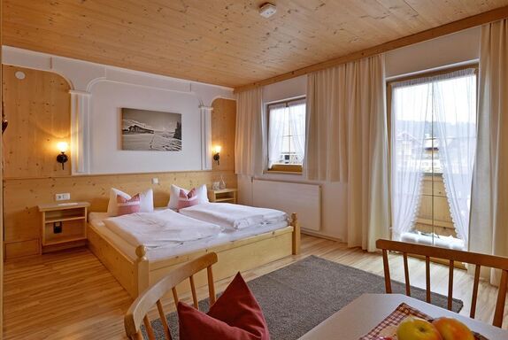 Unser Doppelzimmer mit Kochnische hat einen Wohn-Ess-Schlafraum und einen Balkon. Die Kochnische ist voll ausgestattet, darum buchbar mit oder ohne Frühstück.Bei Buchung ohne Frühstück verringert sich der Preis um € 26,-