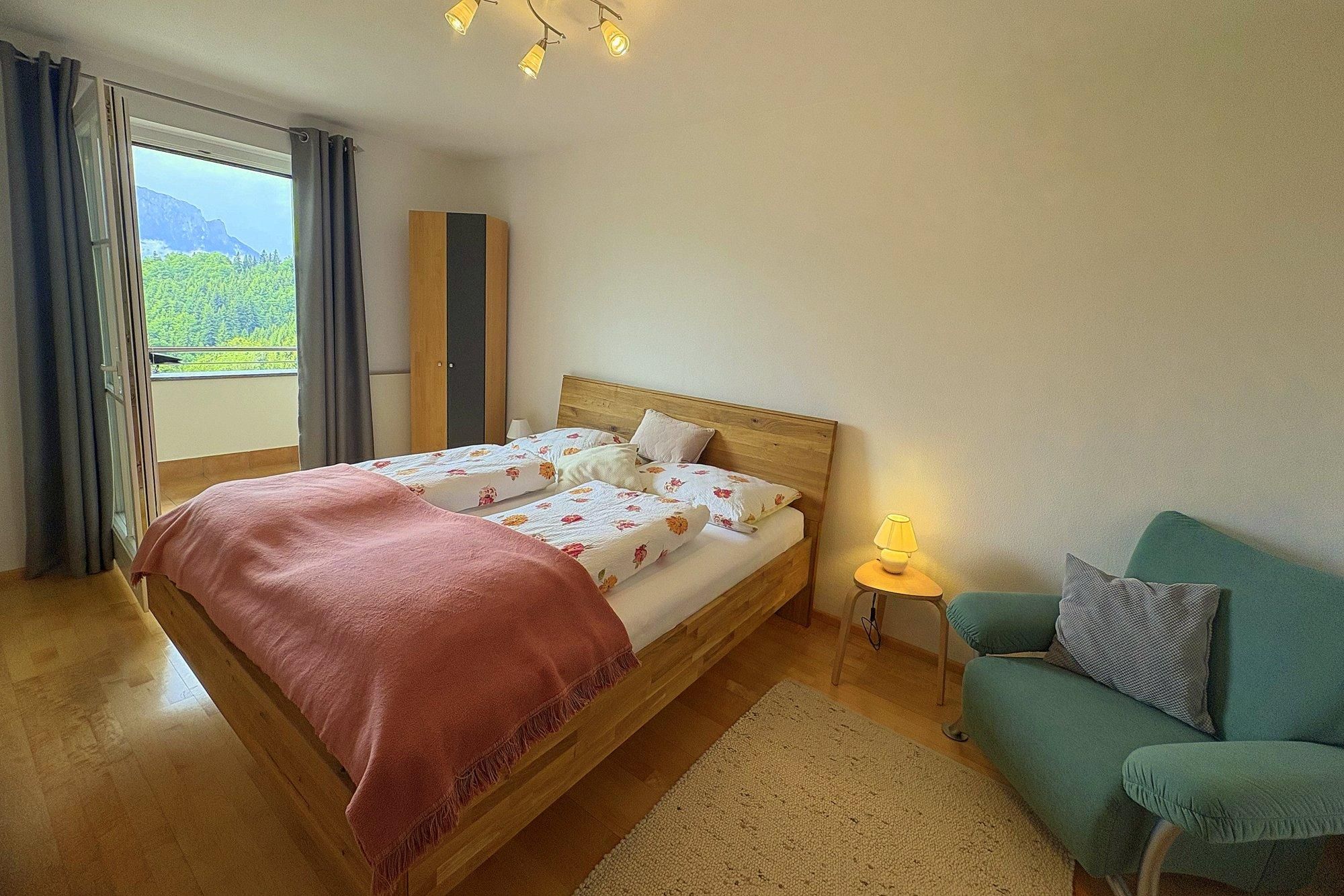 1 Doppelschlafzimmer, Balkon zur Südseite mit Panoramablick, Badezimmer mit Dusche und WC#