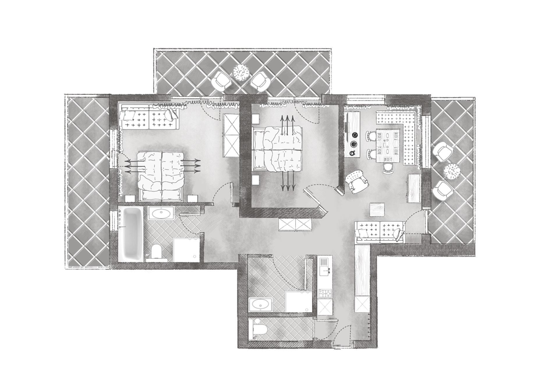 Gemütliches Appartment mit 2 Schlafzimmer für 4-5 Personen (ca. 74 m²): 1 Doppelzimmer, 1 Doppelzimmer/Dreibettzimmer, Wohnzimmer mit Sitzbereich, TV, Radio; 2 Badezimmer mit Badewanne/Dusche, WC und Haarfön; 1 grundausgestatte Küche (Geschirrspüler, 4-Platten-Herd, Kaffeemaschine, uvm.) Balkon oder Terrasse.