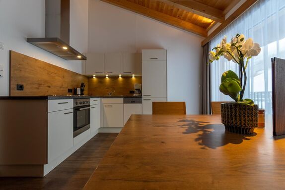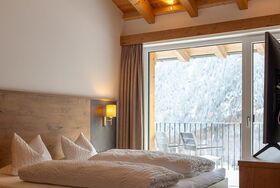 Appartement im 1. Stock mit 2 Doppelzimmer mit jeweils einer Dusche & WC, voll ausgestattete Wohnküche (Kochfeld, Backrohr, Kühlschrank, Filter-Kaffeemaschine, Geschirrspüler uvm.) mit Essbereich, Flat-TV und Balkon mit herrlicher Aussicht auf Sölden. Größe ca. 65 m².
