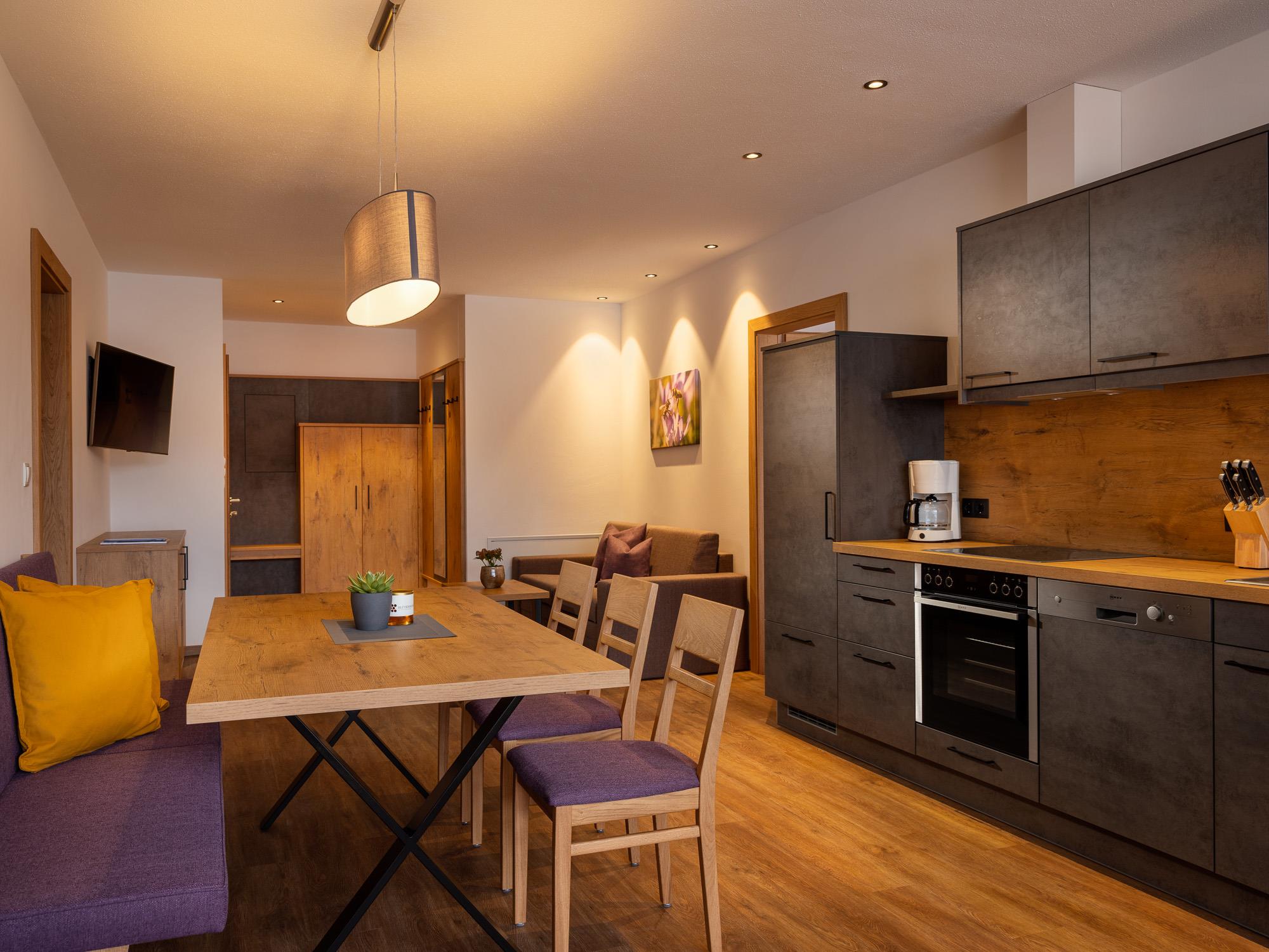 Ebenerdiges, neues Appartement mit 3 Doppelzimmer mit jeweils einem Badezimmer mit Dusche/WC, voll ausgestattete Wohnküche (Cerankochfeld, Backrohr, Kühlschrank mit Gefrierfach, Filter-Kaffeemaschine, Geschirrspüler uvm.) mit Essbereich und gemütlichem, ausziehbarem Sofa (Schlafmöglichkeit für die 7. und 8. Person), Flat-TV und Zugang zur Südterrasse mit herrlicher Aussicht auf Sölden zum Sonne tanken. Größe ca. 80 m².