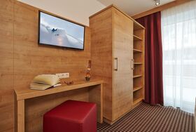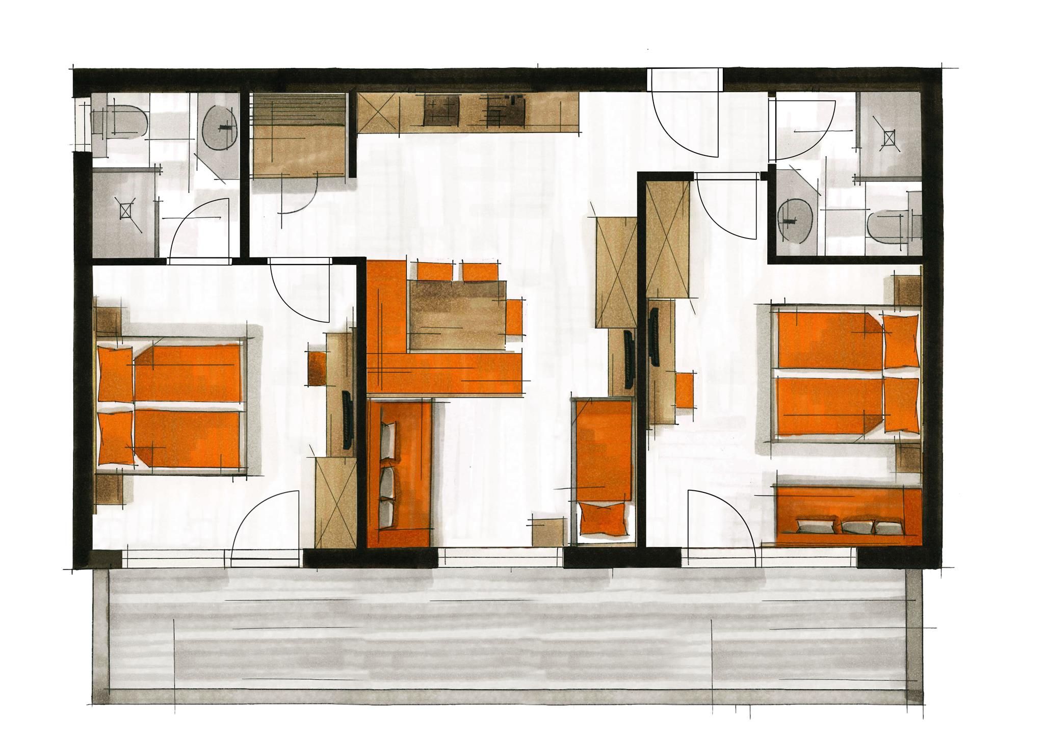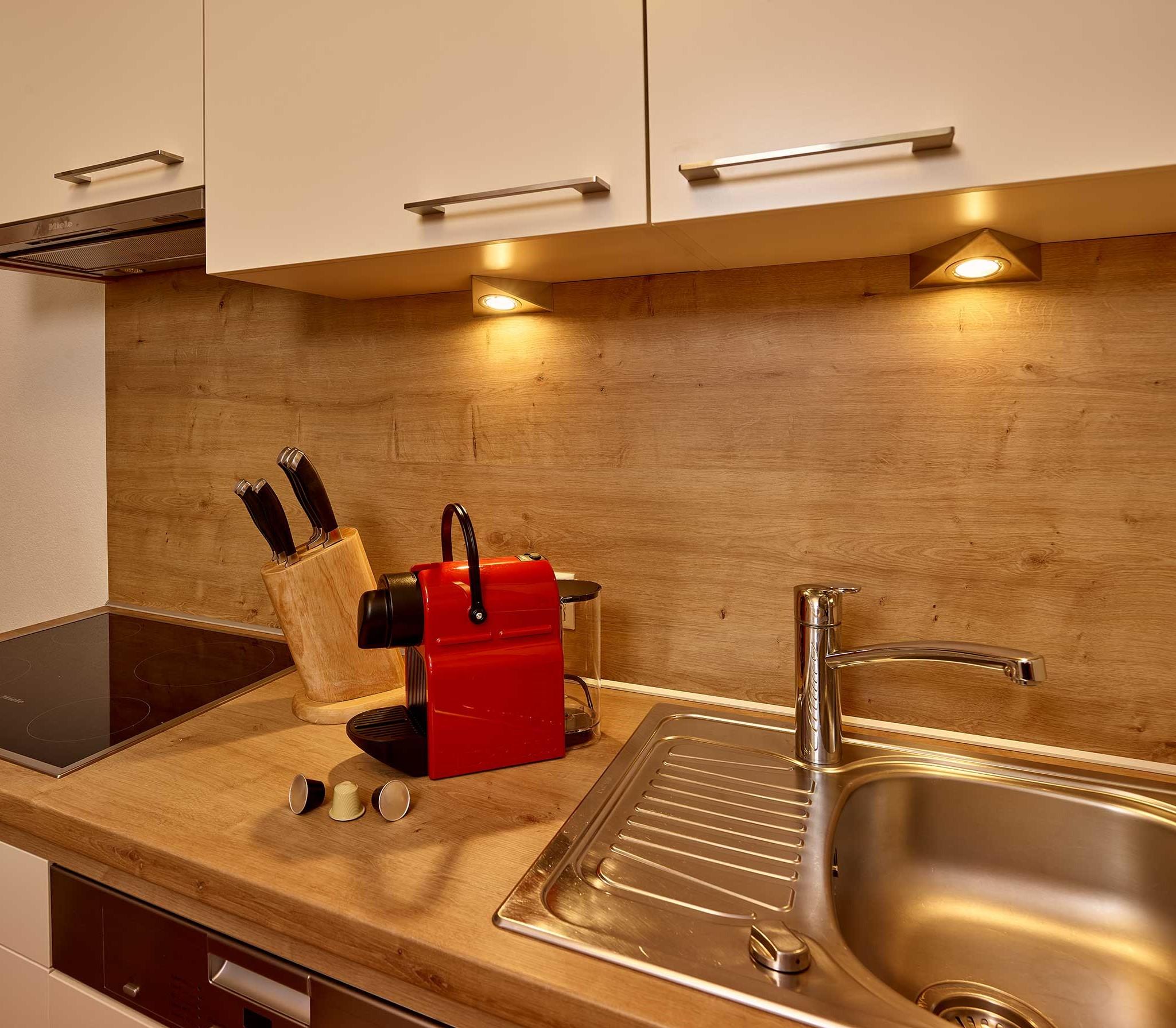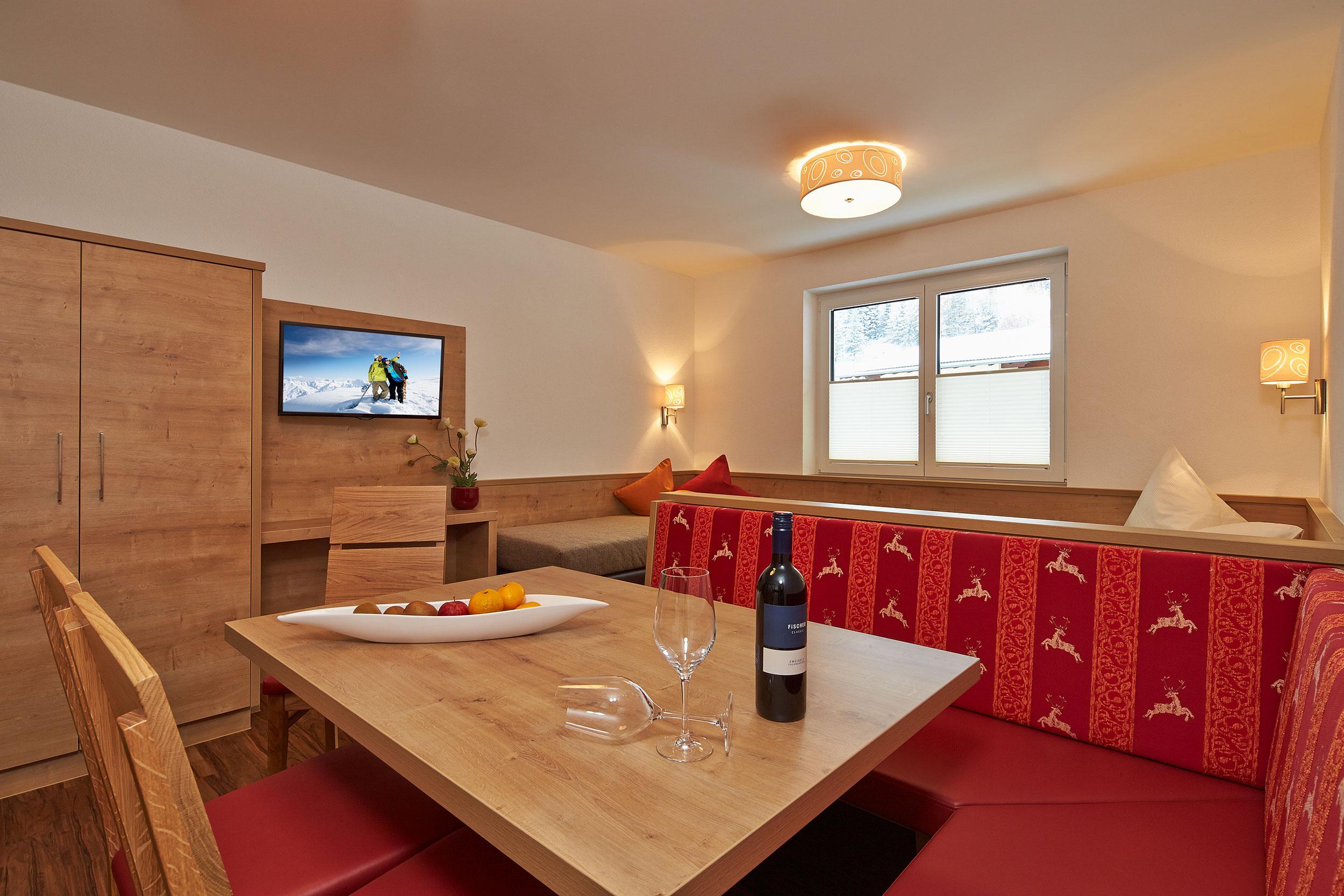 Unser Appartement LIVING TYP 3 (ca. 66 m²) ist sehr modern und hochwertig ausgestattet. 2 Schlafzimmer, 1 Wohn-/Schlafbereich mit 2 vollwertigen Boxspringbetten, gemütlicher Essbereich, voll ausgestattete Küche, 2 Badezimmer mit Dusche/WC und Haarfön, 3 Flat-TV's mit Kabel-TV, Safe, Hand- und Wellnesshandtücher, Geschirrtücher, Bettwäsche, Infrarotkabine und Balkon.