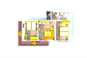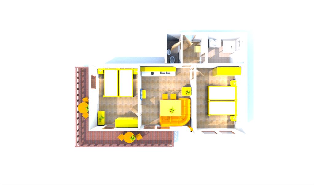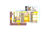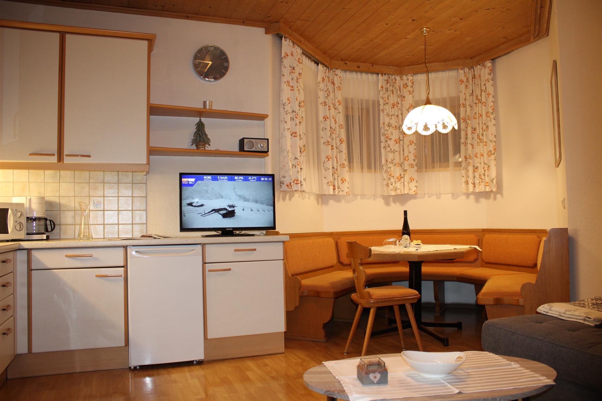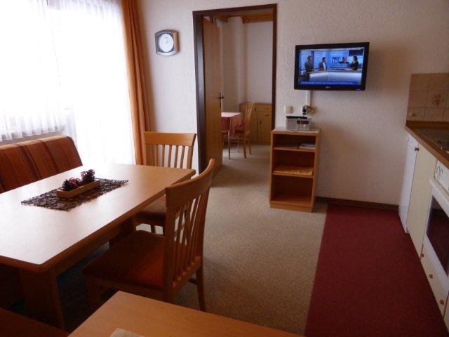 Appartement Nr. 3: 46 m², 1. Stock, Vorraum mit Garderobe, Wohnraum mit gemütlicher Polstersitzecke bis 6 Personen, Kabel-TV, Radio, Küchenzeile, zwei Doppelzimmer, Dusche, WC getrennt, schöner Balkon 18 m² auf Ost- u. Südseite.