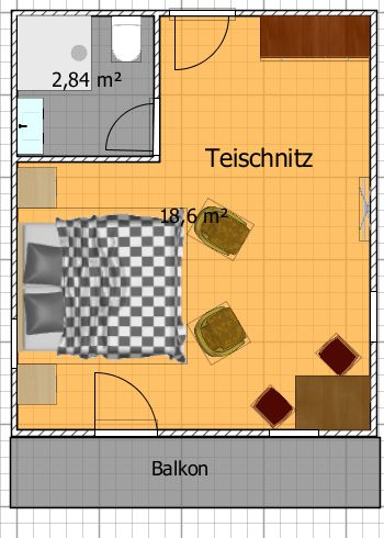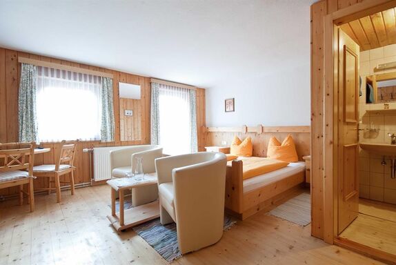 Im Zimmer Teischnitz die kostbarsten Augenblicke genießen. Die Düfte des Bauernhofes, die naturbelassenen Fichtenmöbel und der Holzfußboden lassen dich tief durchatmen.