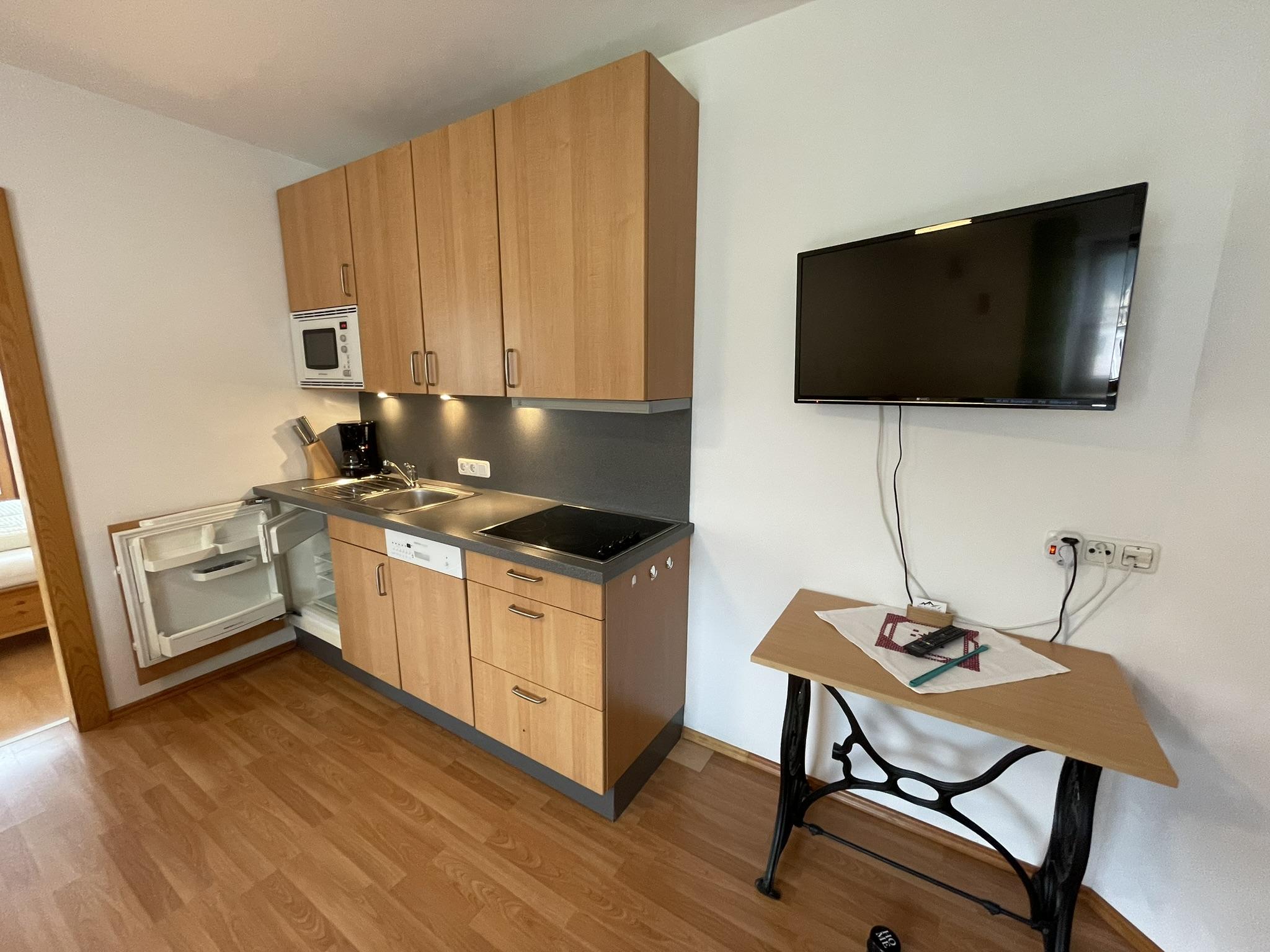Zwei-Raum Ferienwohnung mit 45 m², inkl. SAT-TV und komplett eingerichteter Wohn-Essküche mit Schlafcouch, Schlafzimmer mit Doppelbett, Bad mit Badewanne/WC getrennt, süd-ost ausgerichteter Balkon mit Ausblick auf die Lienzer Dolomiten