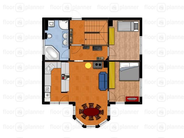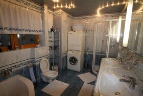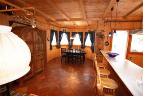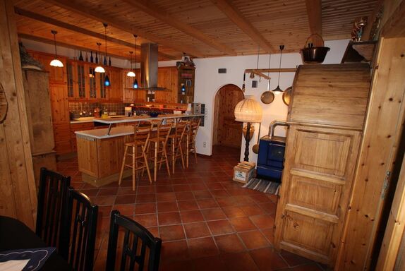 70 m² Fewo für 4-7 Personen. Vorzimmer, Schlafzimmer, Kinderzimmer, große Wohnküche (Geschirrspüler, E-Herd) Bad (2 Waschbecken, Dusche, Badewanne, WC, Waschmaschine), Garten mit Holzterrasse. Bettwäsche, Handtücher, SAT-TV, Pellets-Zentralheizung