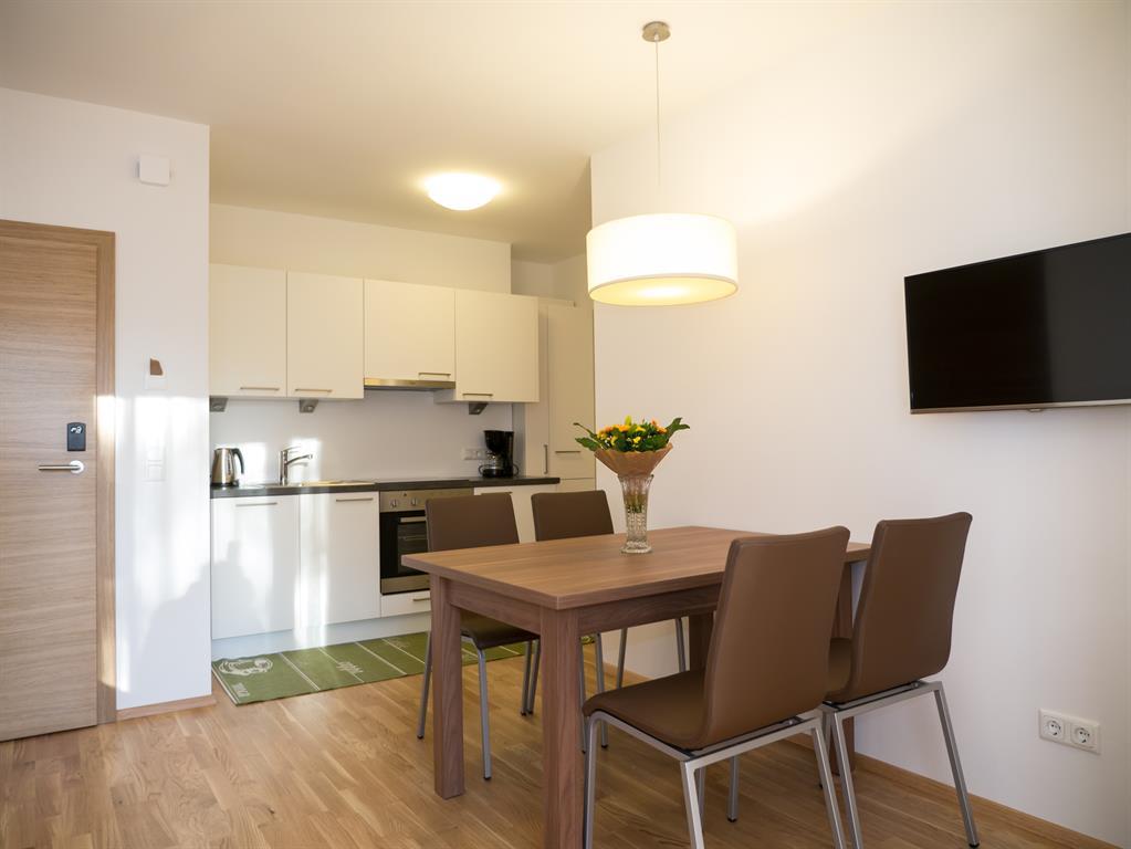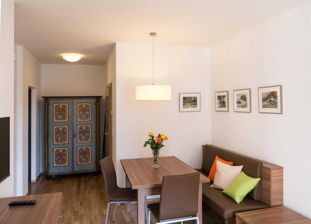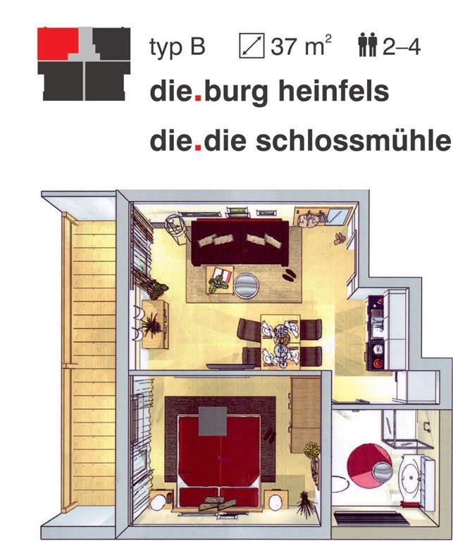 Das Appartement Typ B ist ideal für 2 - 4 Personen und nach Osten ausgerichtet mit Blick auf die Burg Heinfels. Die Wohnung ist unterteilt in einen Wohnküche und einem abgeschlossen Schlafzimmer. Das Appartement verfügt über einen großzügigen Balkon.