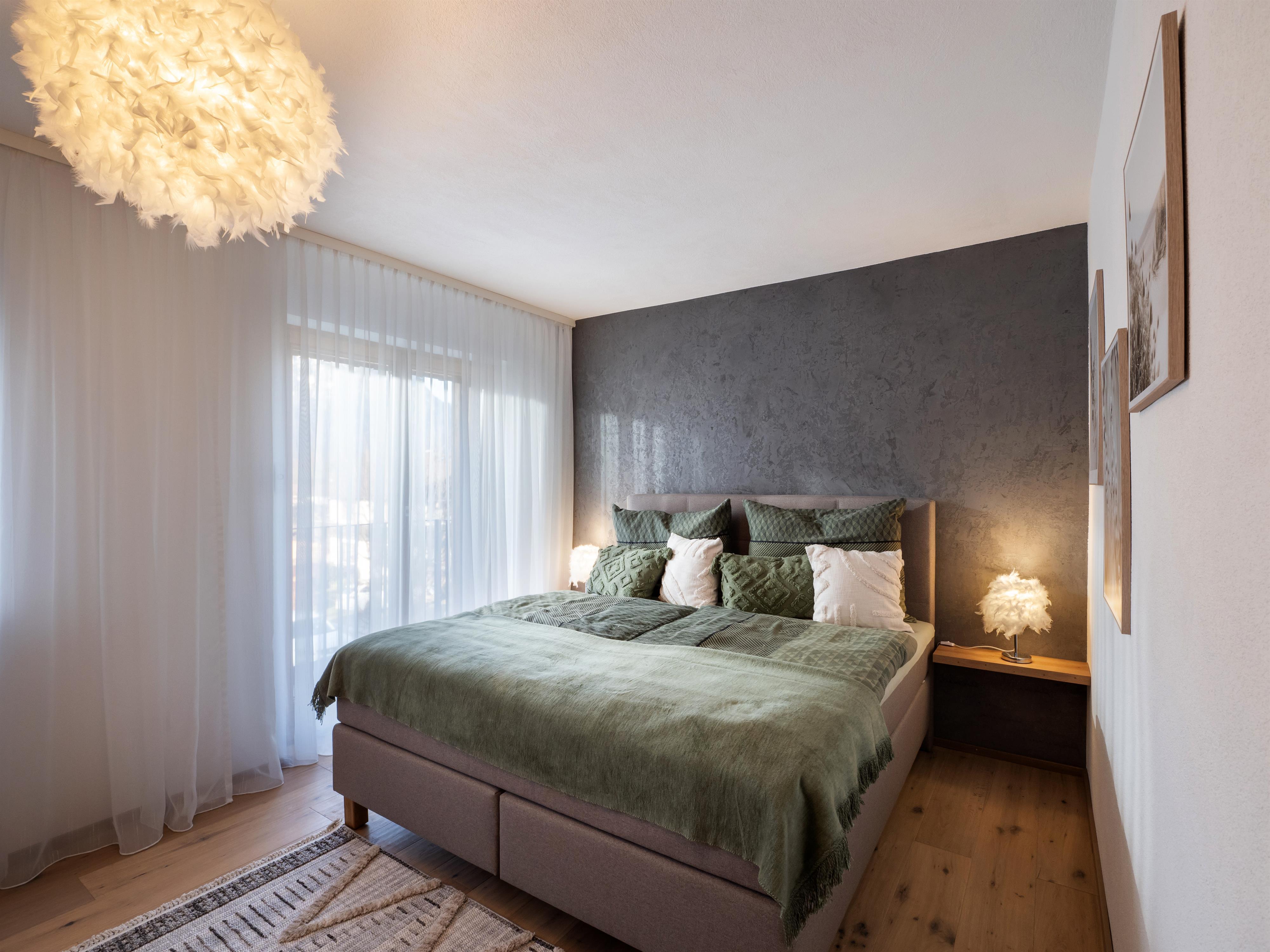 In den beiden mit Boxspringbetten ausgestatteten Schlafzimmern lässt es sich so richtig schön kuscheln und träumen.
