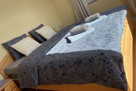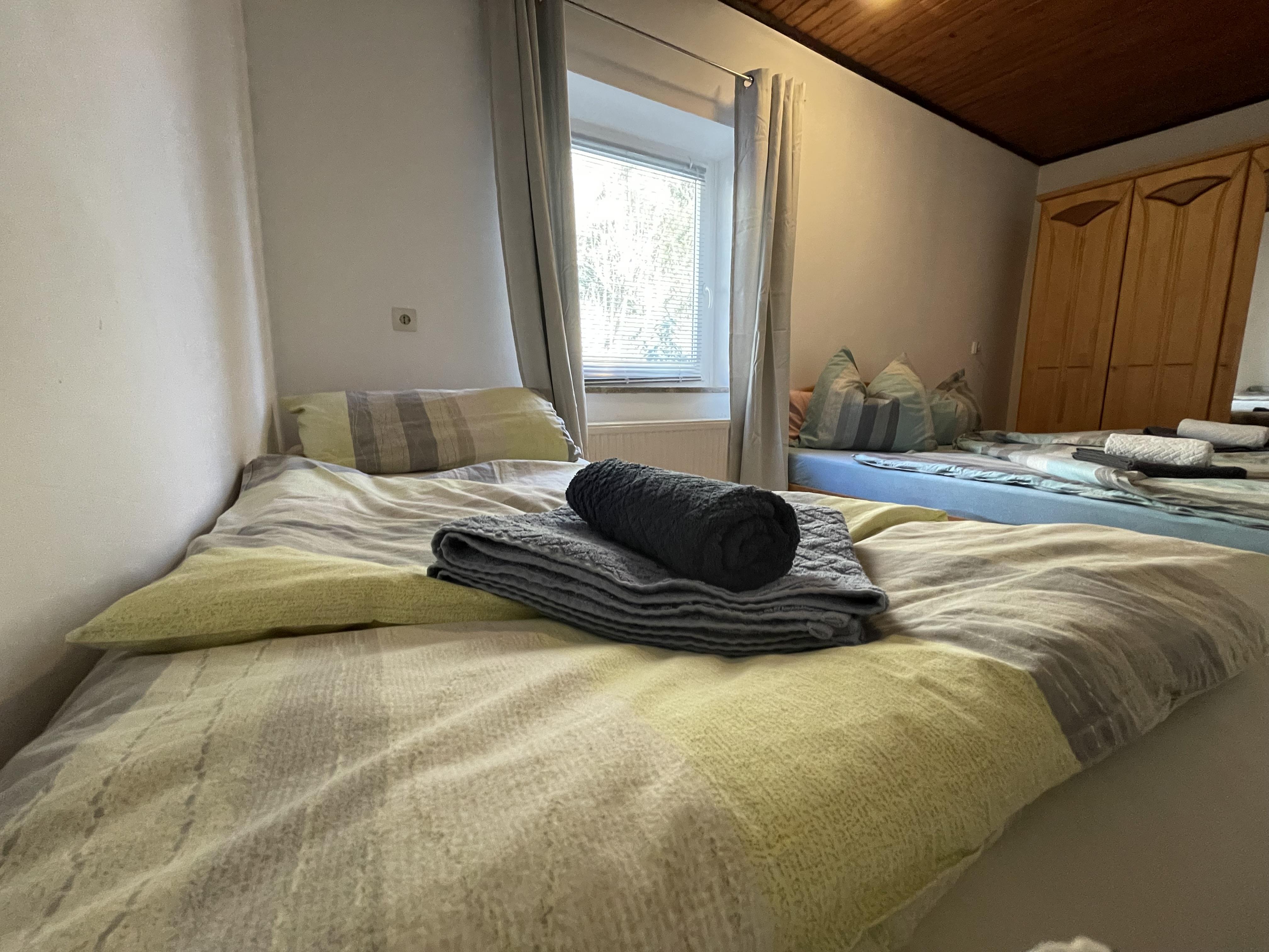 Mit dieser Ferienwohnung stehen Ihnen vier geräumige Schlafzimmer zur Verfügung. Zwei Schlafzimmer befindet sich im 1. Stockwerk, zwei weiteren Schlafzimmer befinden sich im 2. Stockwerk. Im 1. Stockwerk befindet sich das große Bad, sowie eine separate Toilette. Ein weiteres, kleineres Bad mit einer Dusche und WC finden Sie im 2. Stockwerk. Des Weiteren stehen Ihnen neben dem geräumigen Wohn-/Esszimmer ein weiteres Rückzugszimmer zur Verfügung. Im Anschluss an das geräumige Wohn-/Esszimmer finden Sie eine geräumige Terasse mit direktem Gartenzugang.