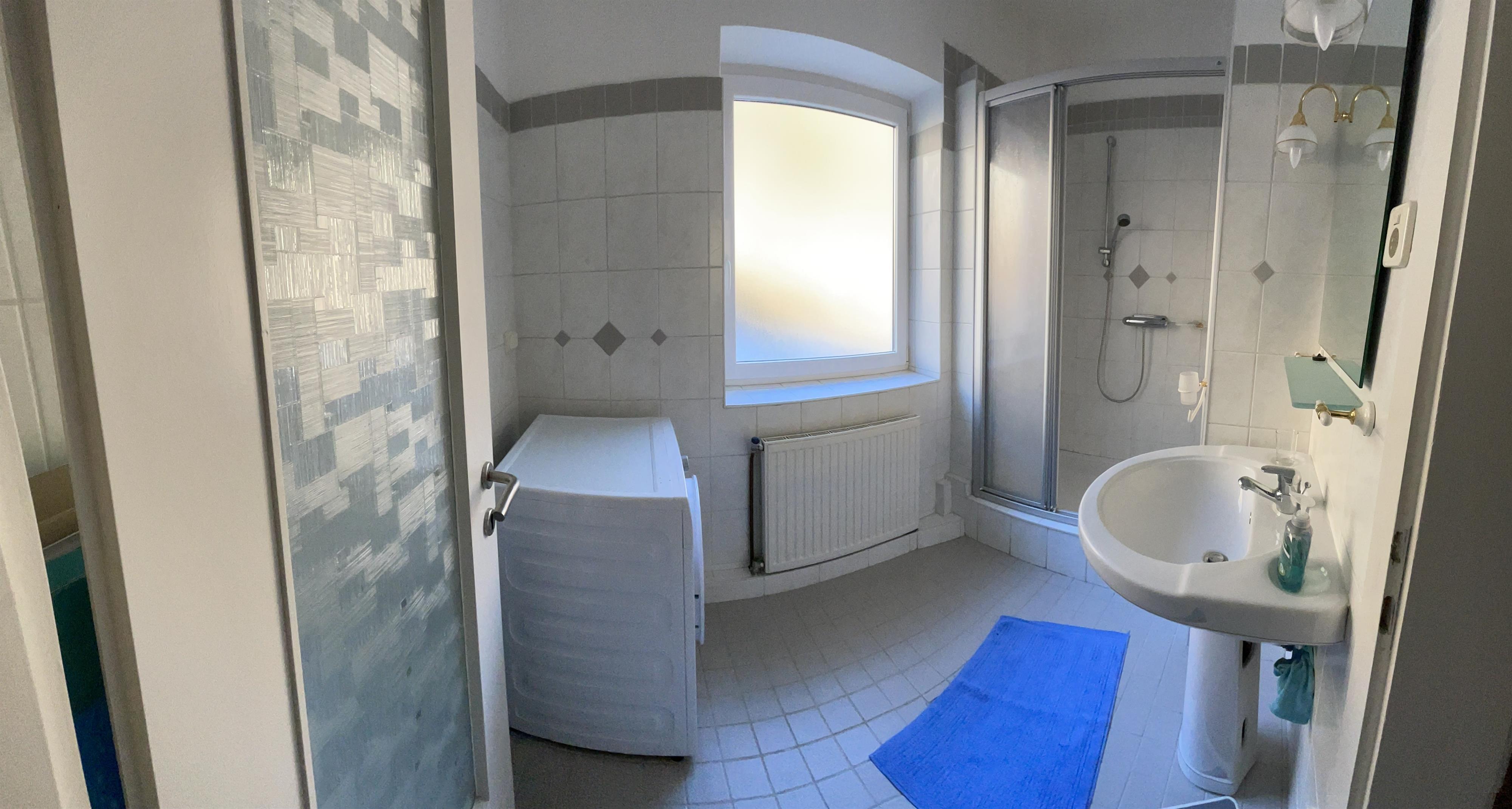 Sie befindet sich im ersten und zweiten Obergeschoss eines freistehenden Hauses. Die im Erdgeschoss befindliche Wohnung des Hauses ist an eine freundliche Dame vermietet. Der Gartenbereich steht Ihnen allein zur Verfügung, der über das erste Obergeschoss erreichbar ist.