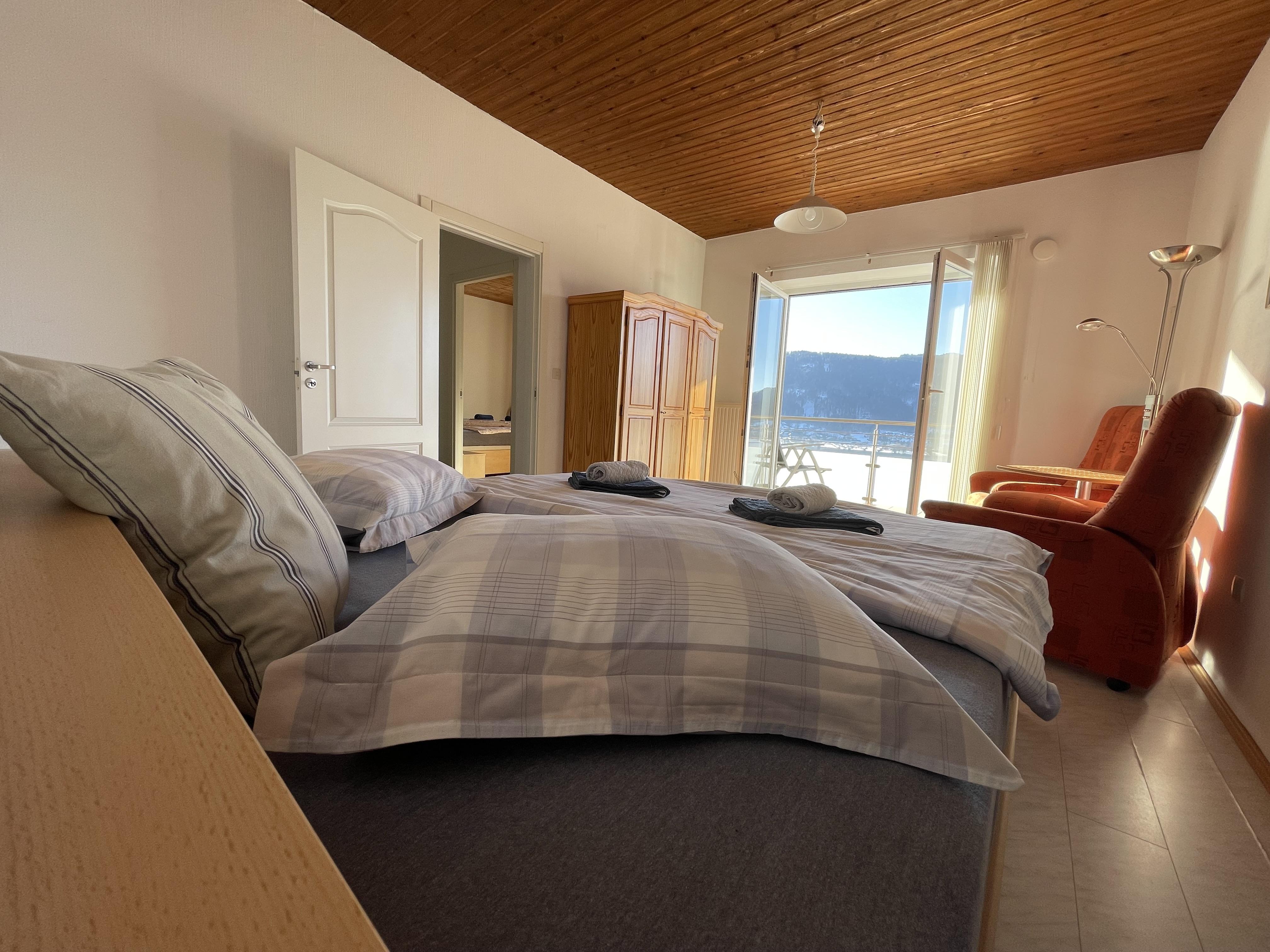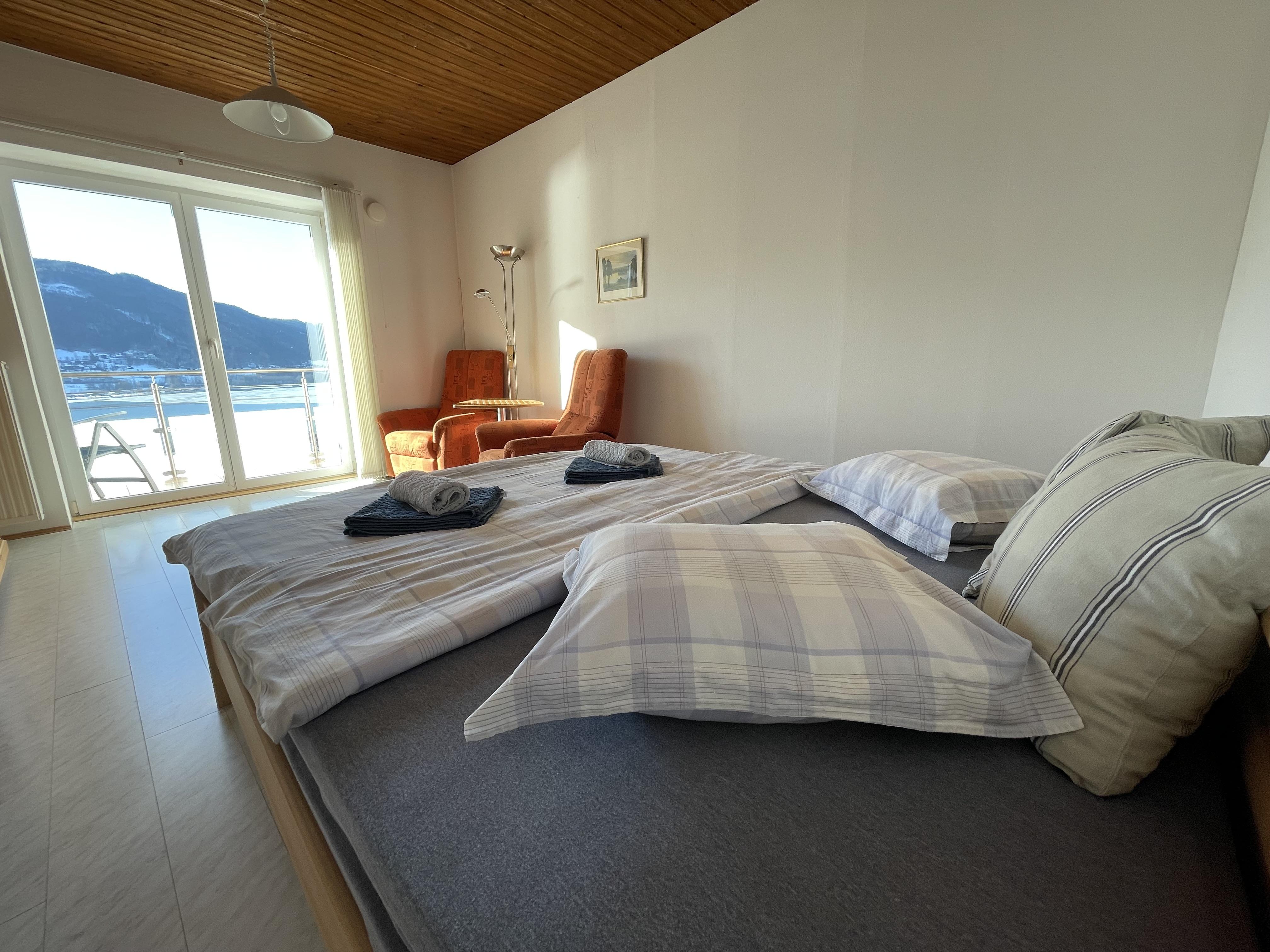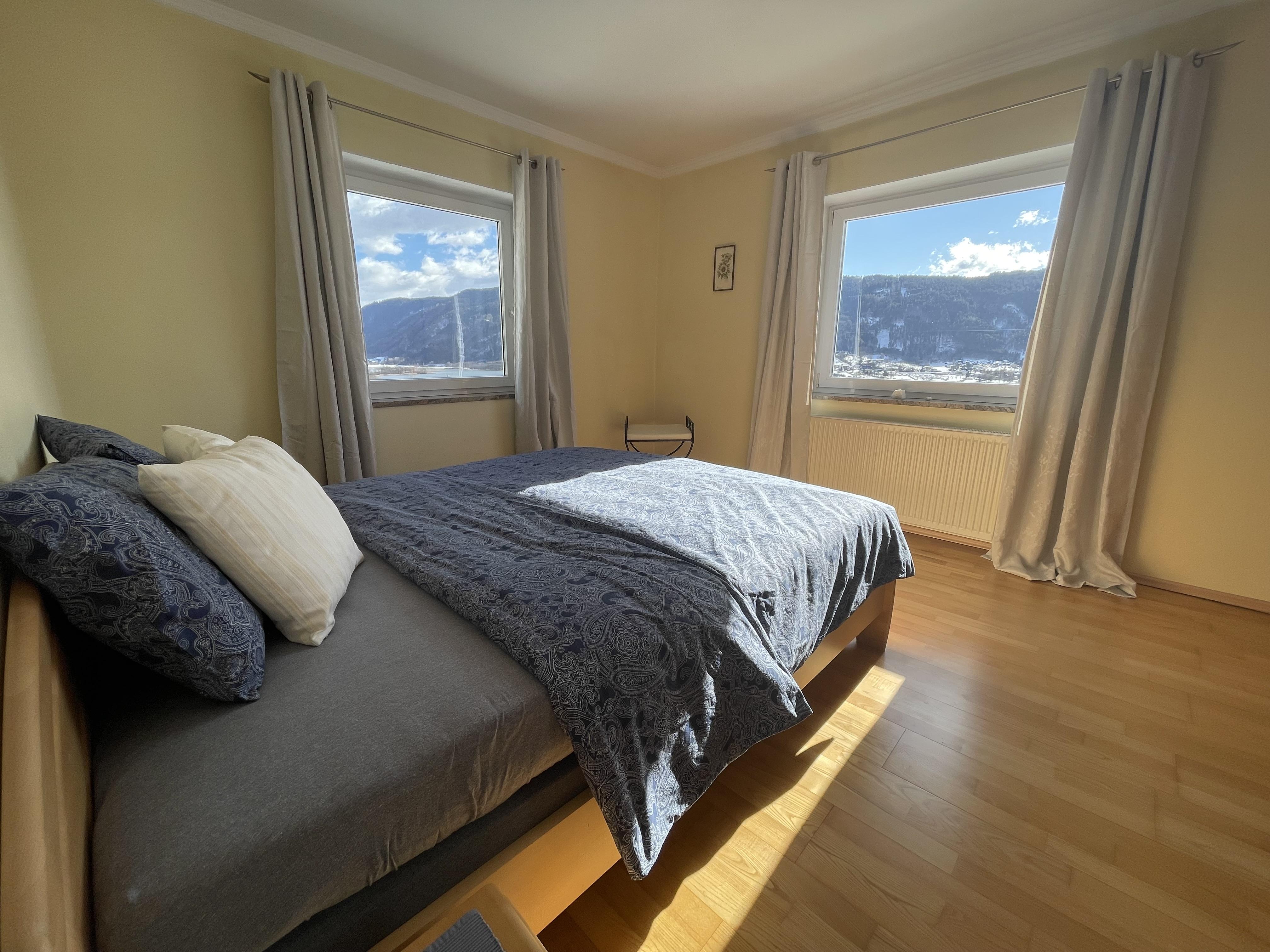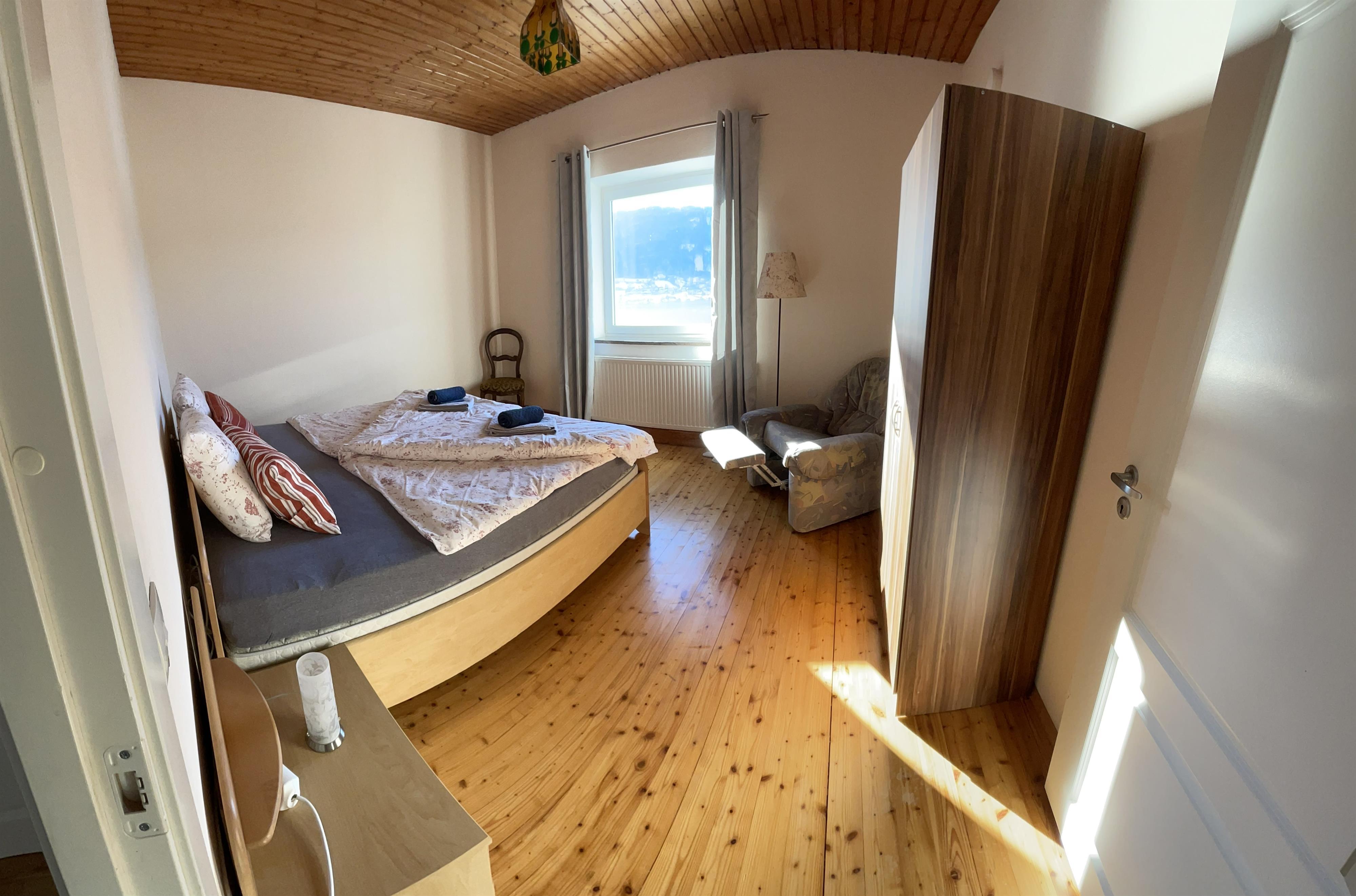 Neben den Schlafzimmern, einem geräumigen Wohnzimmer und zwei großzügigen Terrassen können Sie aus den Zimmern den Blick über den See genießen.