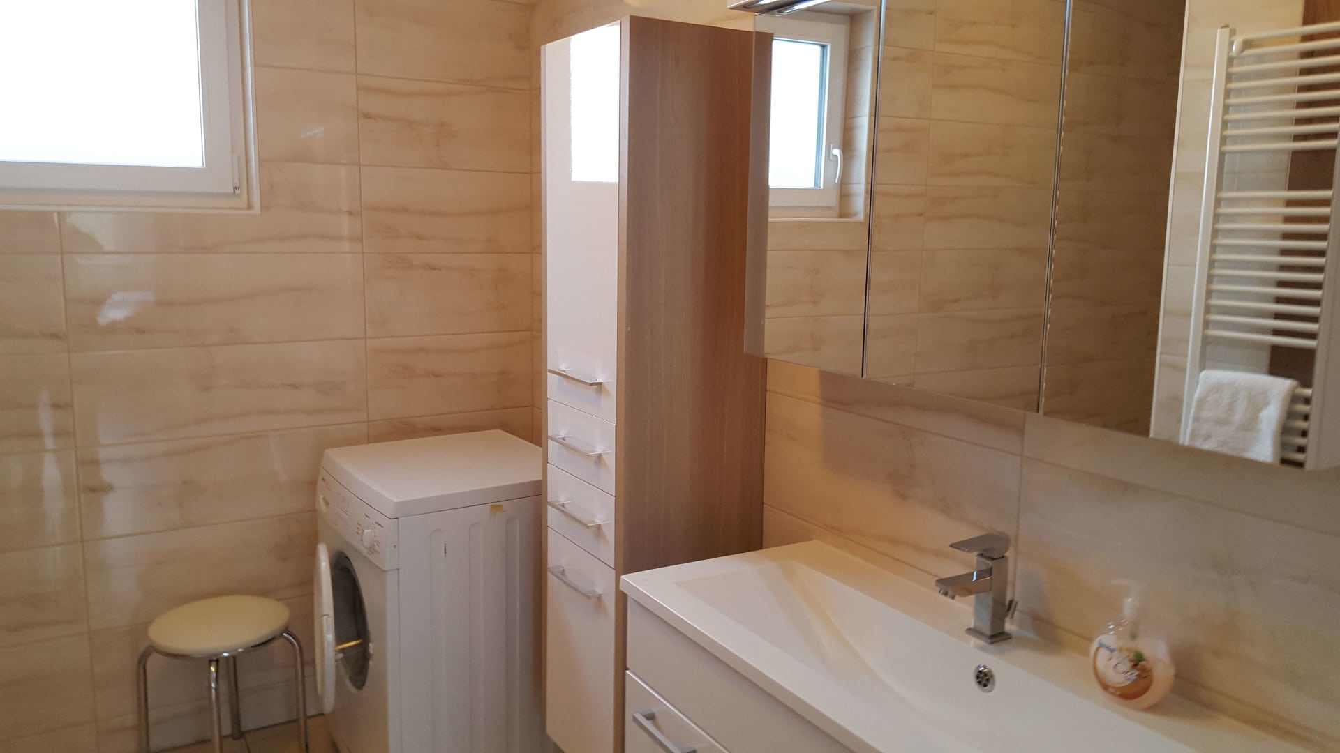 Größe 95 m², 4 Zimmerappartement mit großem Wohnzimmer und Doppelcouch, Küche mit Essplatz mit Komplettausstattung inkl. Kühlschrank/Kühltruhe, E-Herd mit Backrohr, Geschirrspühler, Schlafzimmer mit Doppelbett, Kinderzimmer mit 3 Betten, Duschbad inkl. Waschmaschine, WC getrennt, Sat-Flat-TV, W-Lan, große Sonnenterrasse, Balkonmöbel, Relaxliege, besonders geeignet für Großfamilien.