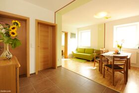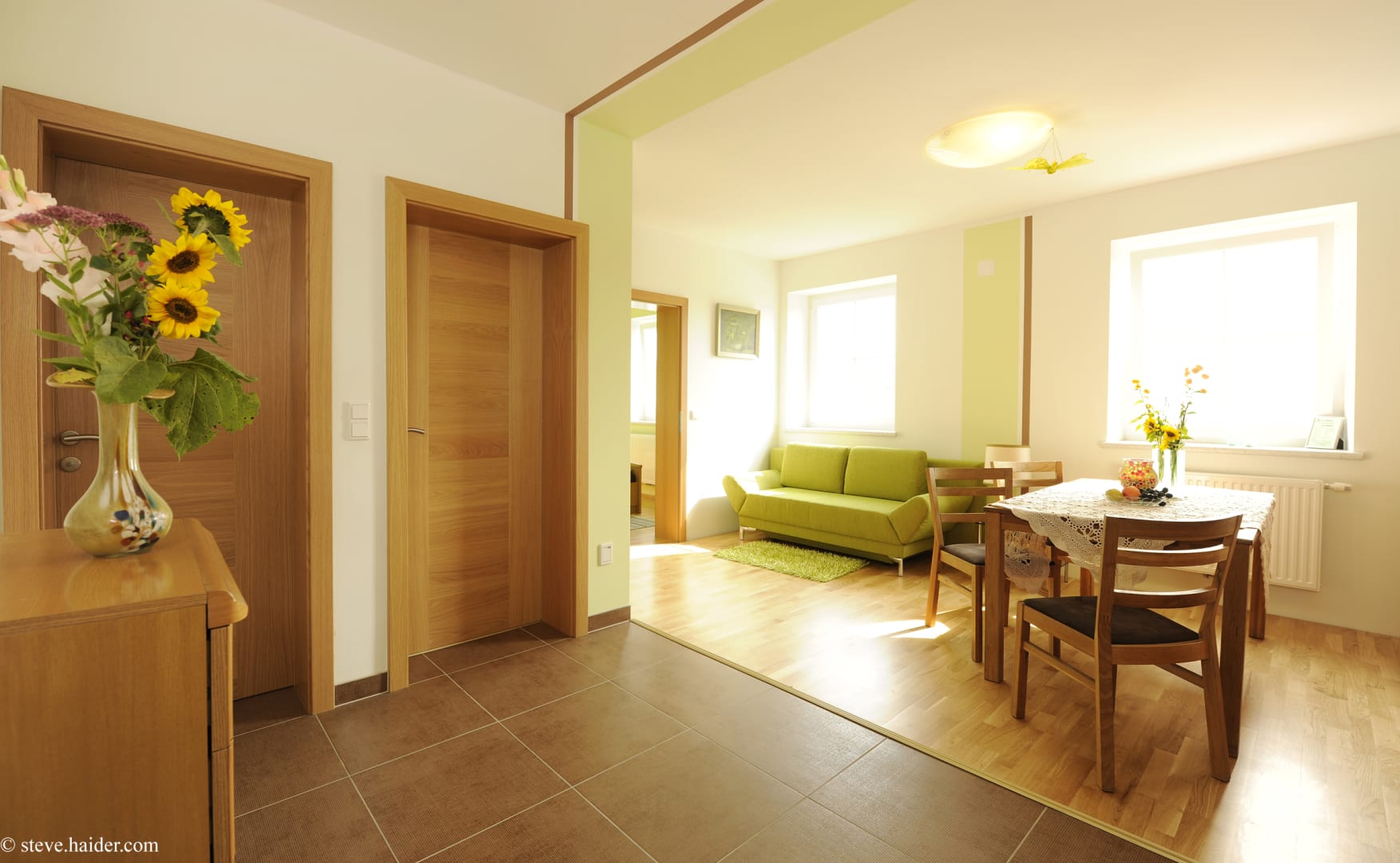 In unseren geräumigen nagelneuen Ferienwohnungen mit 56m² finden Sie alles was Sie für einen entspannten Urlaub benötigen. Die Wohnküche hat einen abgetrennten Kochnische, für Kleinigkeiten ist sie perfeckt , eine gemütliche Spiel Essecke und zwei getrennte Schlafzimmer für je 2 Personen. Selbstverständlich gibt es auch einen TV-Apparat. Ein eigenes WC und ein Bad vervollständigen die Suite. Elektrische Rollos zur Verdunklung der Räume sind ebenfalls vorhanden.