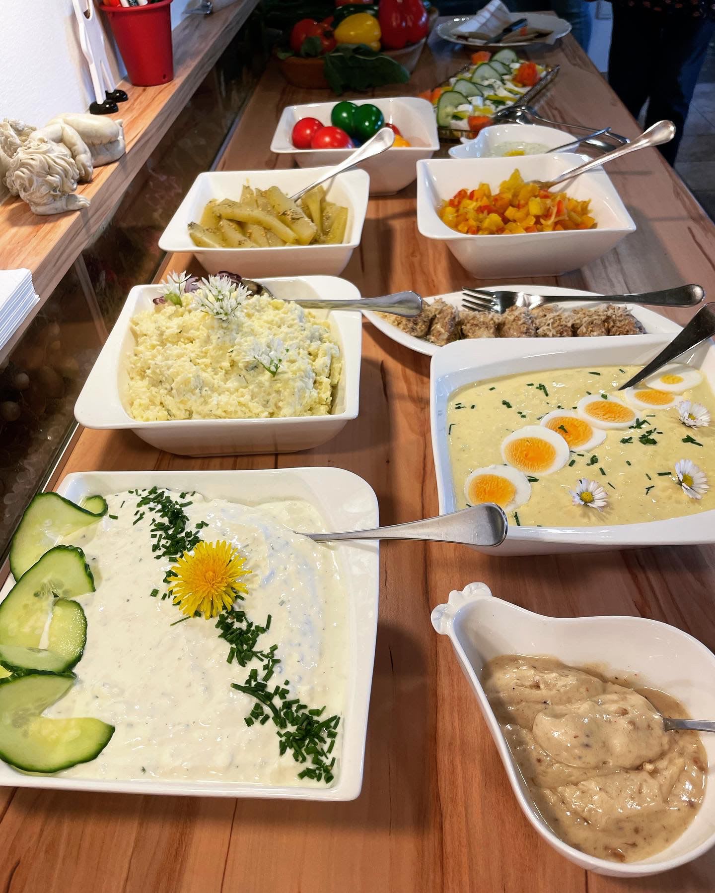 • Wir bieten folgende Verpflegung am Betrieb: Frühstück, Produkte vom eigenen Hof oder Hofladen, Halbpension, Vollpension