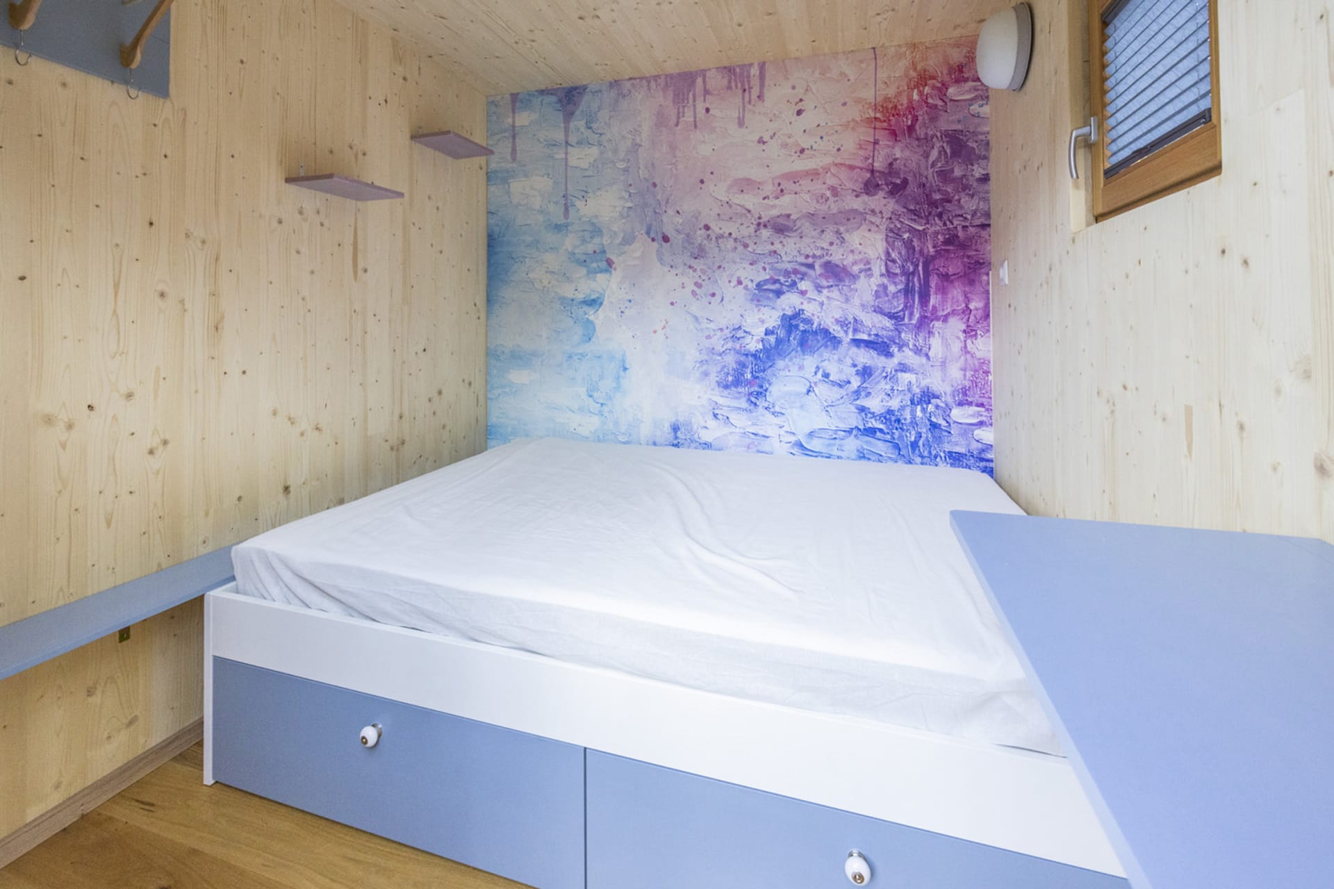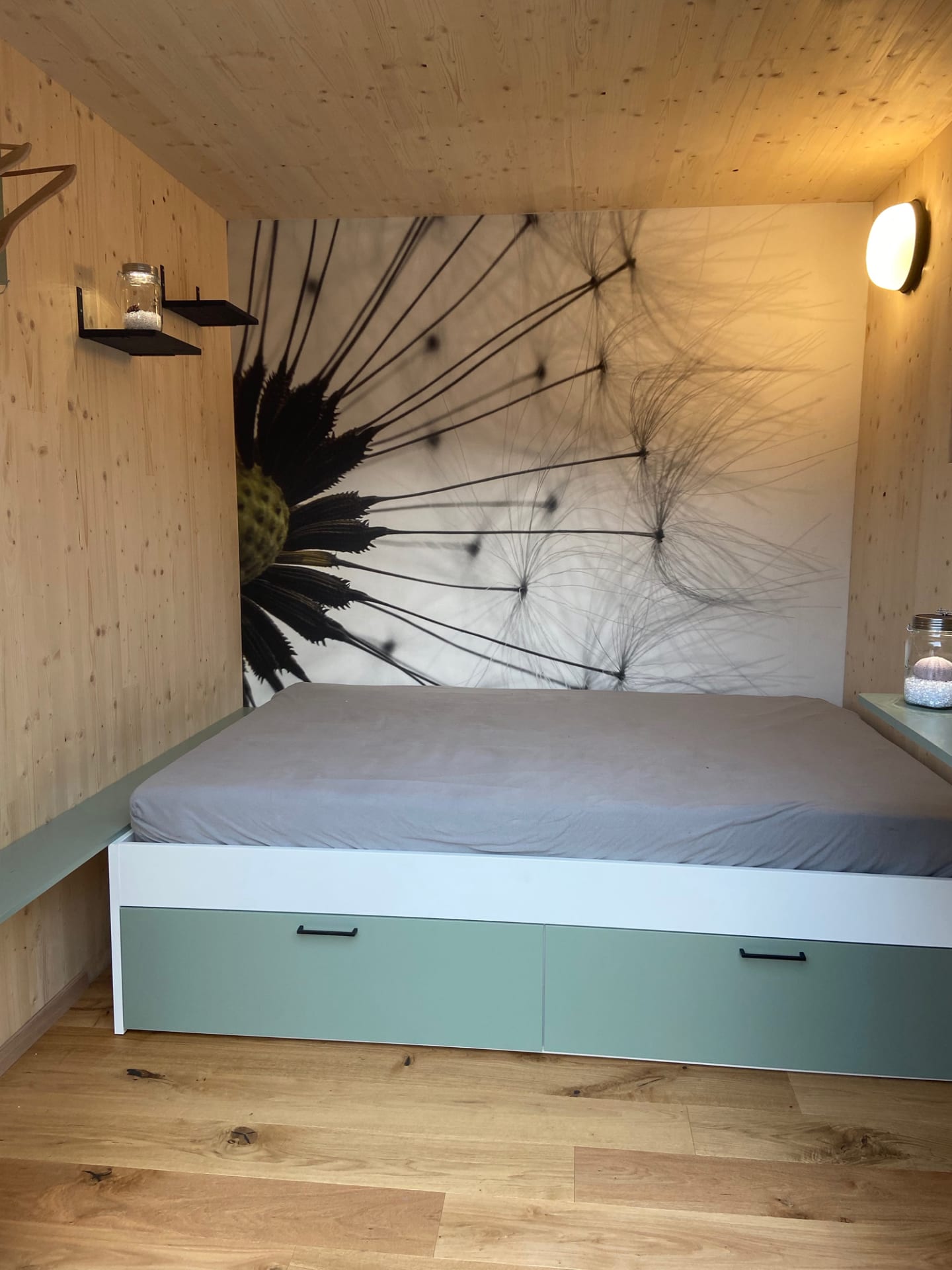 Die minimalistischen Holz-Schlafboxen bieten komfortable Übernachtungsplätze für 1–2 Personen und sind ideal für eine Nacht, kurze Auszeiten oder Digital Detox. Kein TV, kein Schnickschnack – dafür Ruhe, Natur und bewusstes Ankommen.