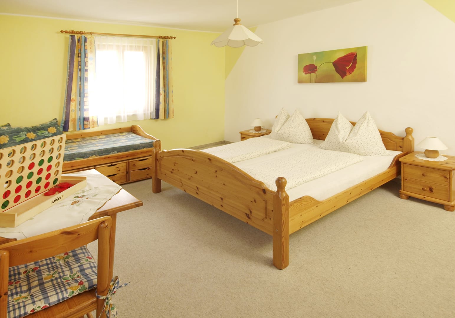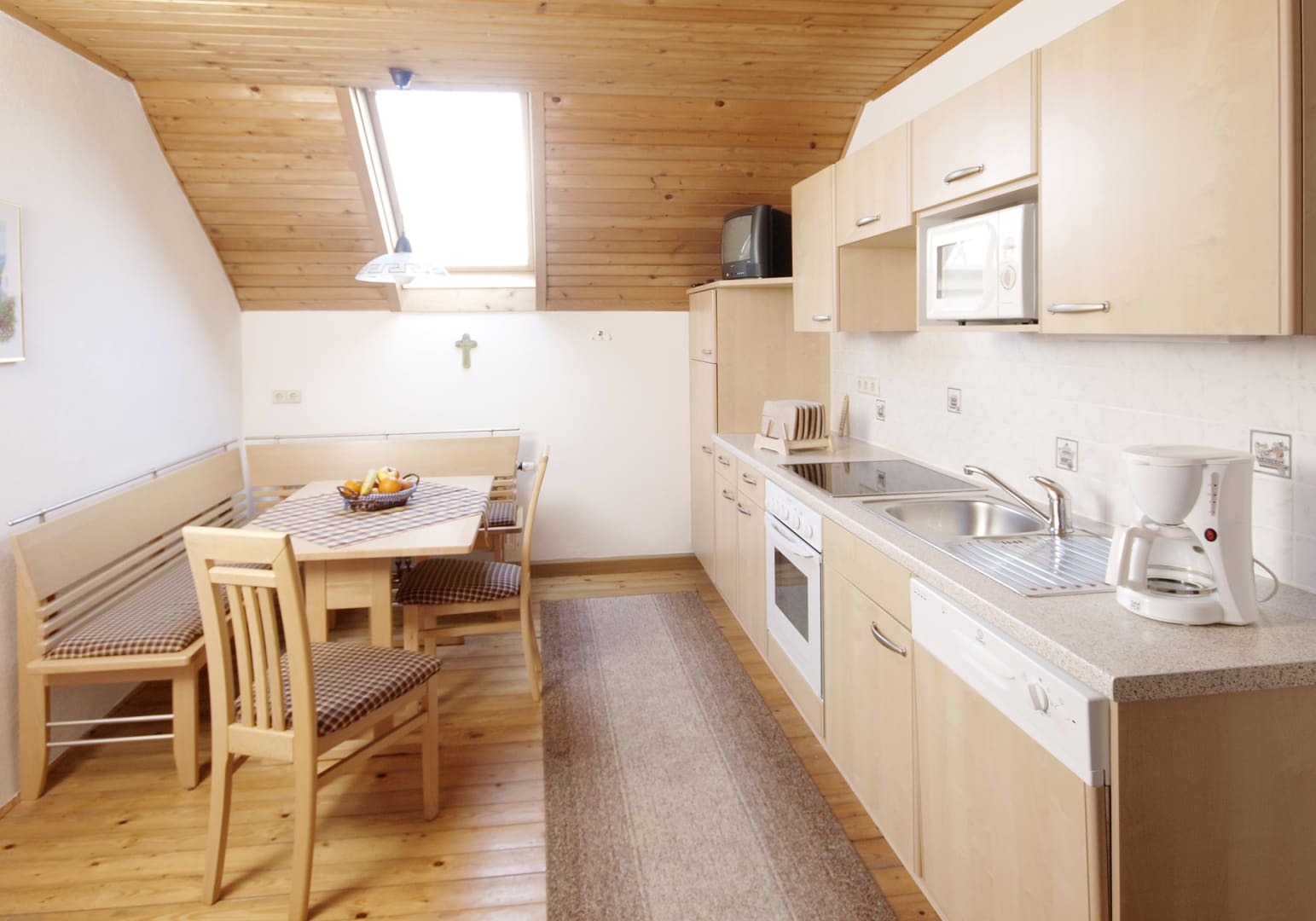Sie wohnen bei uns in liebevoll eingerichteten Ferienwohnungen mit Vollholzmöbeln.