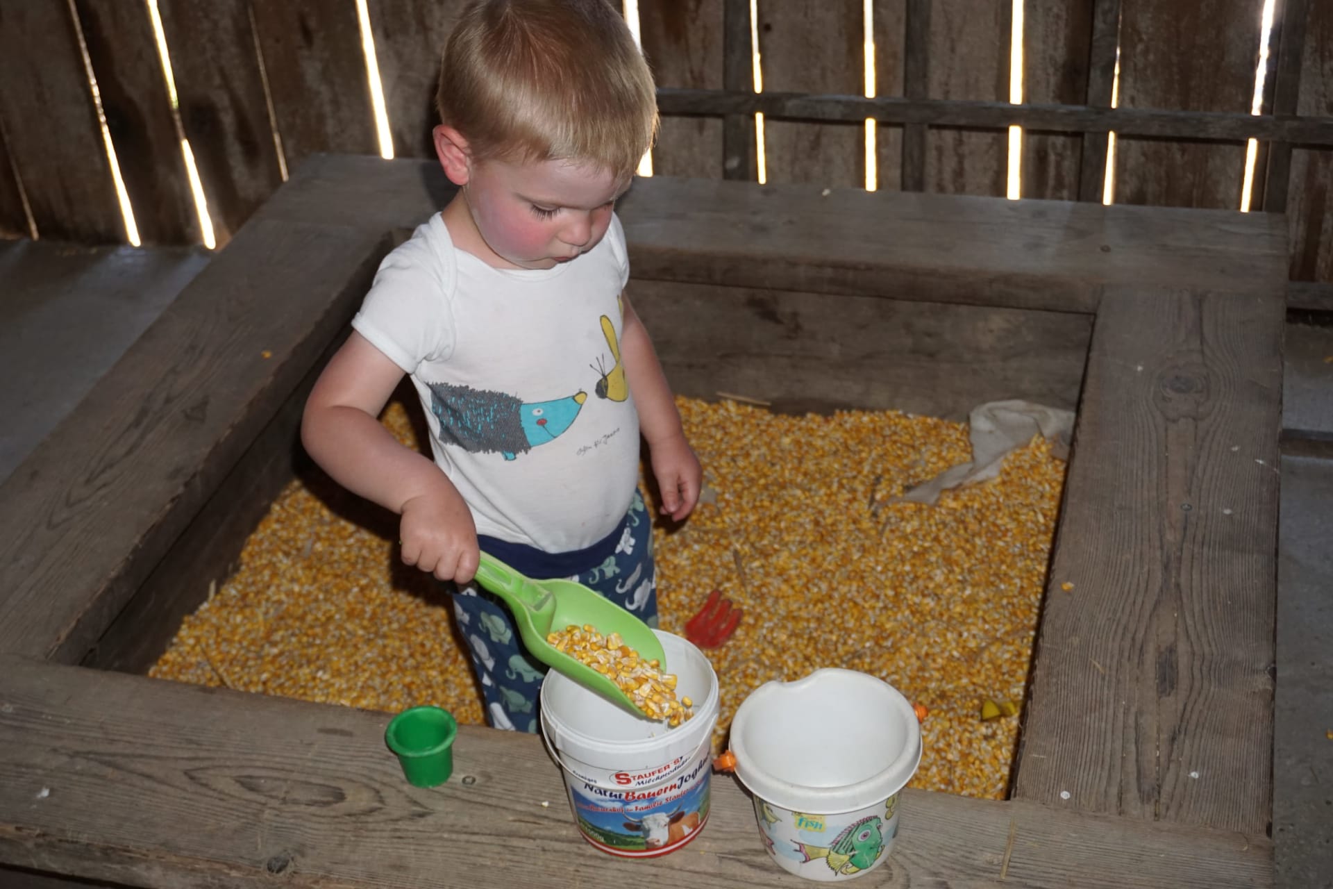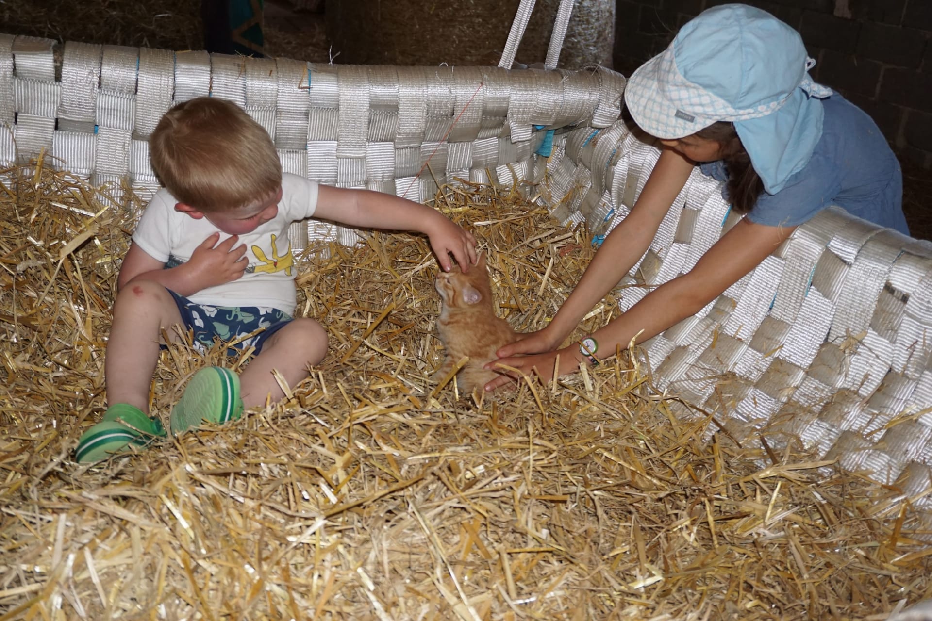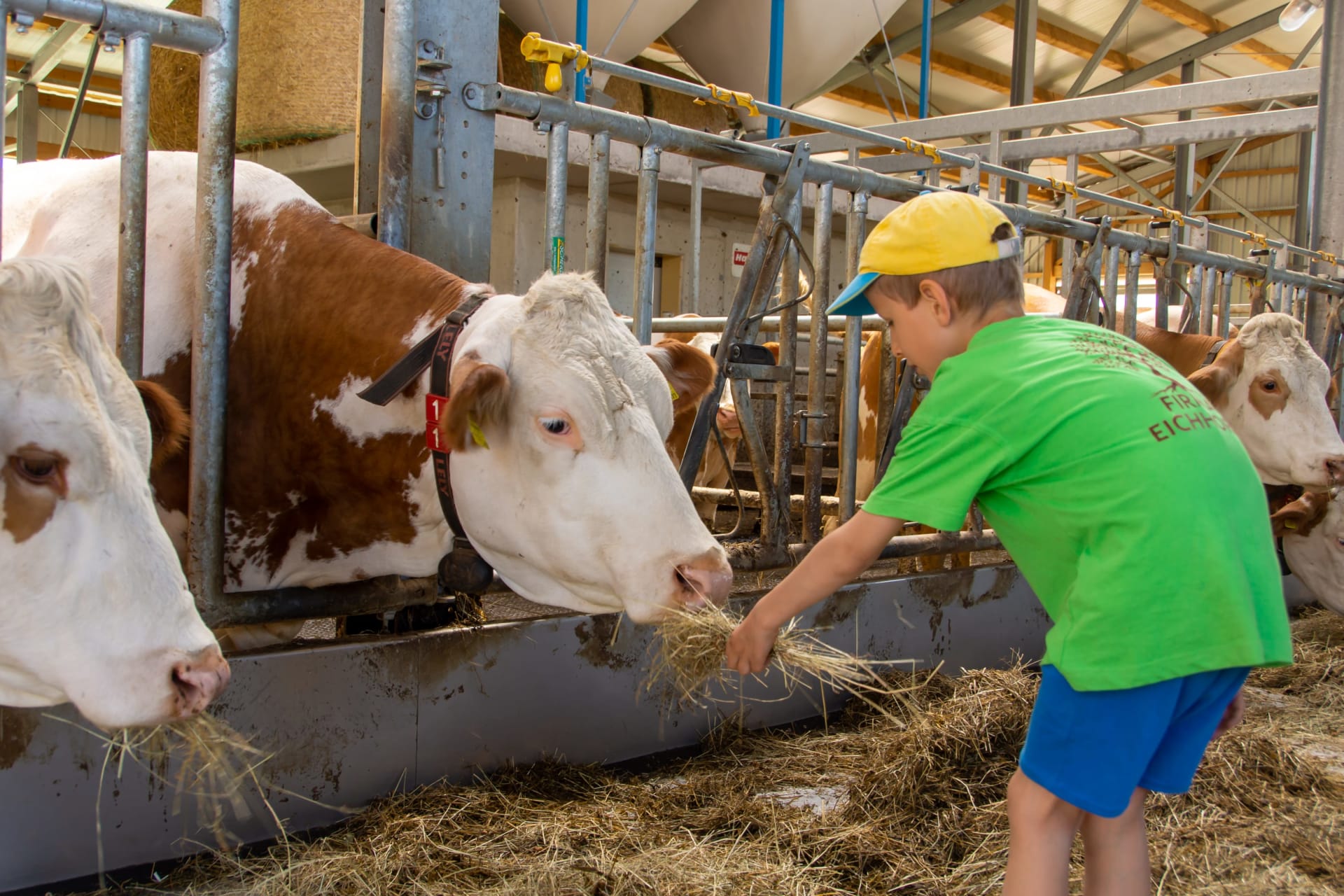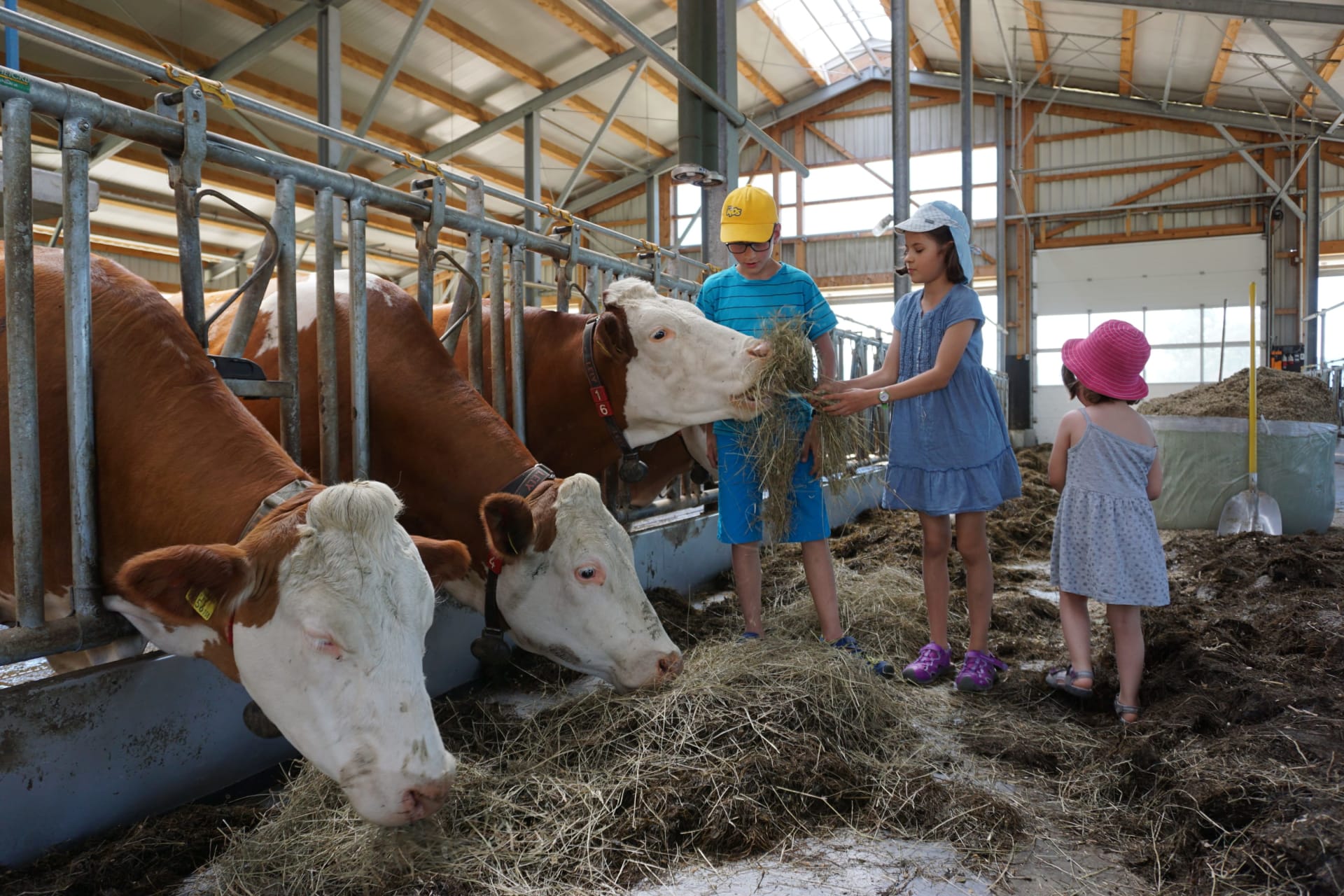 Großen Spaß haben die Kinder im Stall, wo sie jederzeit die Tiere füttern und streicheln dürfen: Kühe und Kälber, Kaninchen, Katzen, ein Schweinchen, Hühner mit Hahn und unsere beiden Ponys Nora und Charly. Liebe Kinder, in unserer Spielscheune könnt ihr euch so richtig austoben, im Heu und Stroh springen, Burgen bauen und vieles mehr. Der Phantasie sind keine Grenzen gesetzt!