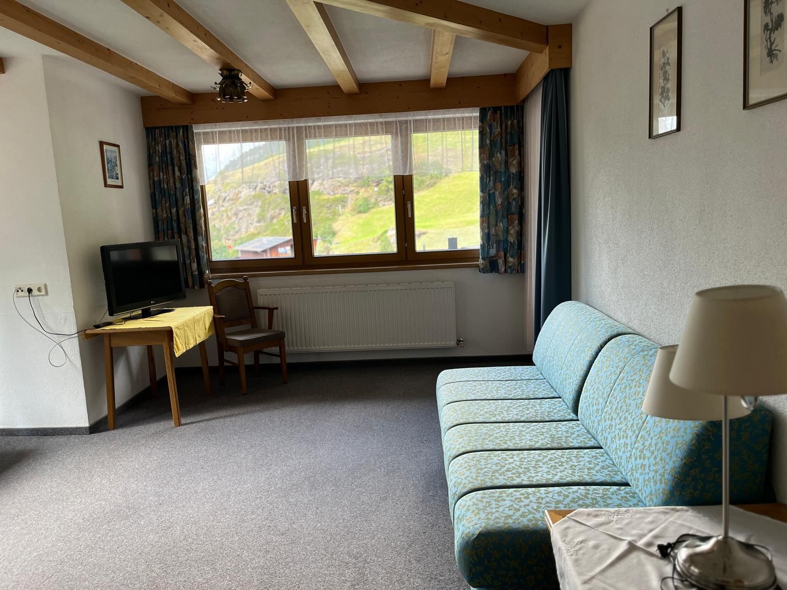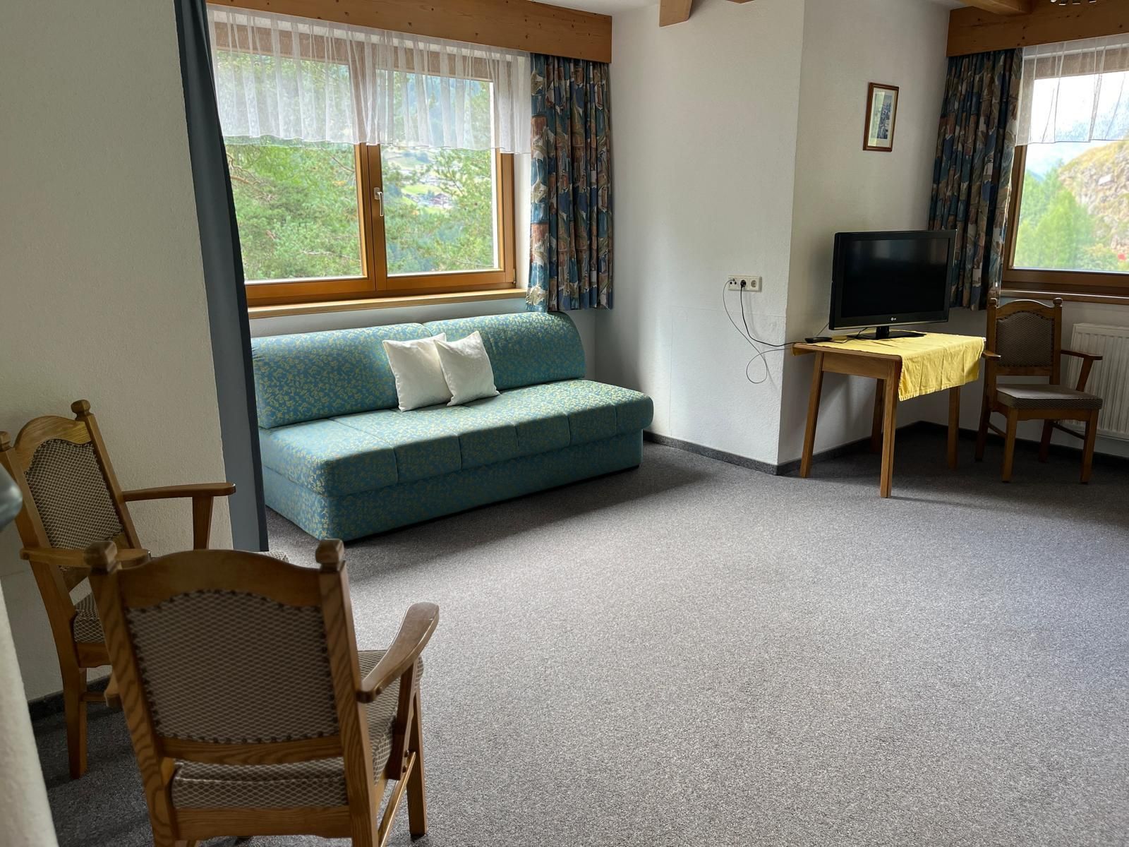 Sehr geräumiges, gemütliches Appartement mit 2 Doppelzimmer davon 1 x mit getrennten Betten, ein Badezimmer mit Bad/Dusche/WC, + 1 getrenntes WC, Küche: Geschirrspüler, Kaffeemaschine, Wasserkocher und Backrohr, separate Stube mit 2 zusätzlichen getrennten Betten, TV-Sat und Balkon.