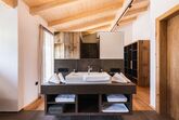 Das Apartment Edelweiß mit ost- und westseitigem Balkon wurde mit vielen Naturmaterialien neu gestaltet. Es ist ausgestattet mit einer privaten Sauna, einem sonnendurchfluteten Badezimmer mit Dusche und separatem WC, einem Schlafzimmer mit Vollholz-Doppelbett und Parkettboden, komplett ausgestatteter Wohnküche mit Mikrowelle und Esstisch, gemütlicher Wohnlandschaft mit Sitzgruppe und Sat-TV.