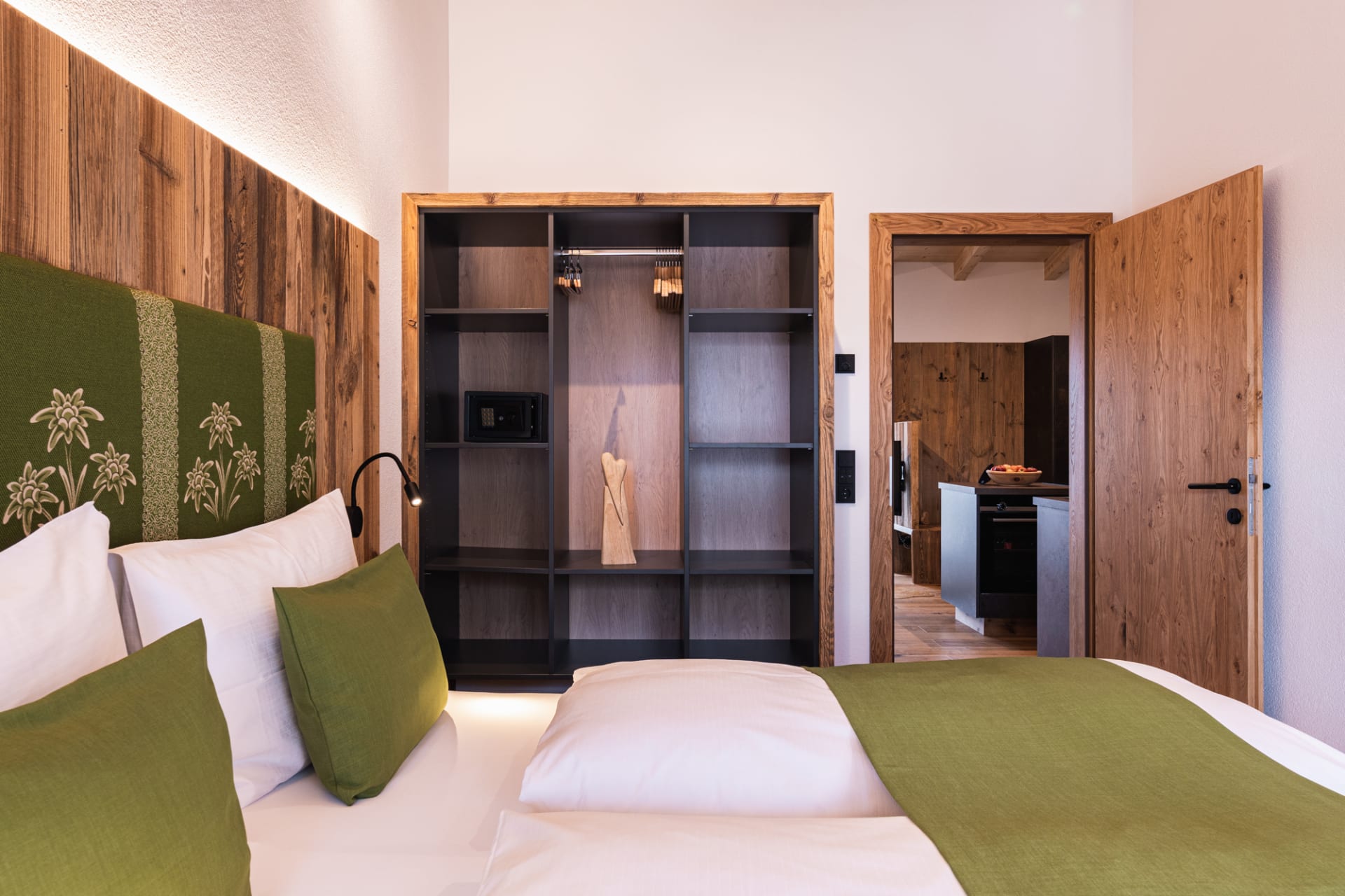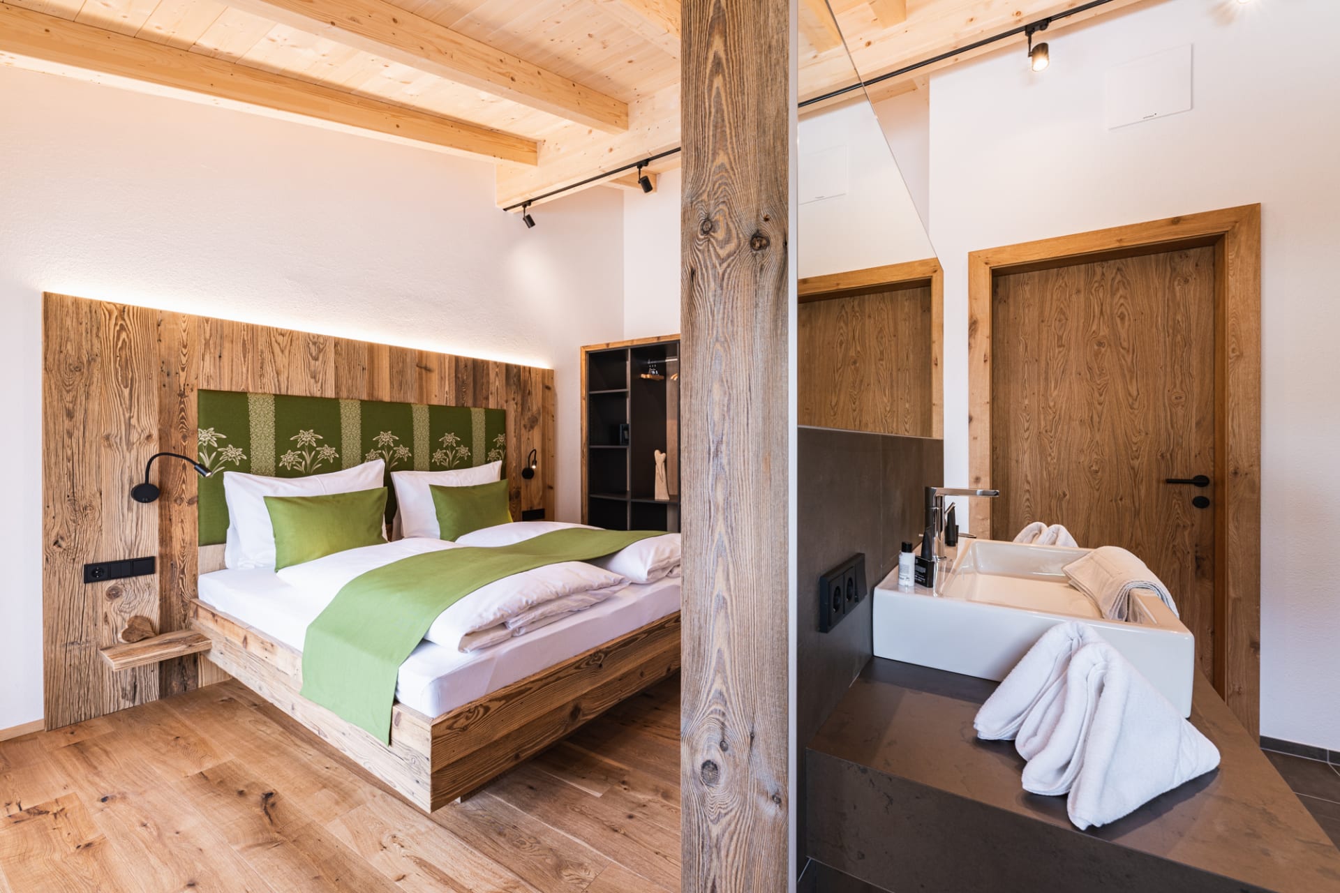 Seit dem Frühjahr 2020 wohnen unsere Gäste in unseren neu errichteten zwei Apartments und in den erneuerten Zimmern. Es erwarten Sie großzügig und erstklassig gestaltete Räumlichkeiten. Mit Bedacht und viel Liebe zum Detail haben wir für Sie geplant und eingerichtet. Sie wohnen bei uns in jeder Einheit mit einzigartigem Ausblick, erlesener Ausstattung und mit privatem Balkon, in den Apartments verfügen Sie sogar über Ihre eigene Sauna.