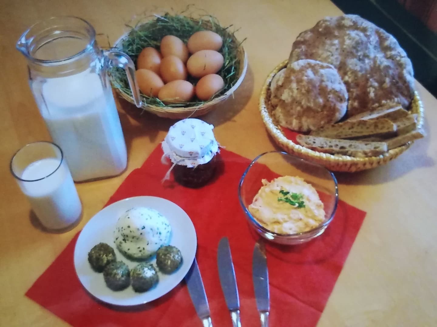 Nicht zu vergessen sind unsere besonderen Köstlichkeiten: Probieren Sie unser selbstgebackenes Bauernbrot, genießen Sie frische Milch und Eier direkt von unserem Hof. Unsere Kühe, Kälber, Katzen und Hühner sorgen nicht nur für eine idyllische Atmosphäre, sondern bieten Ihnen auch die Möglichkeit, regionale Produkte direkt bei uns zu erleben.