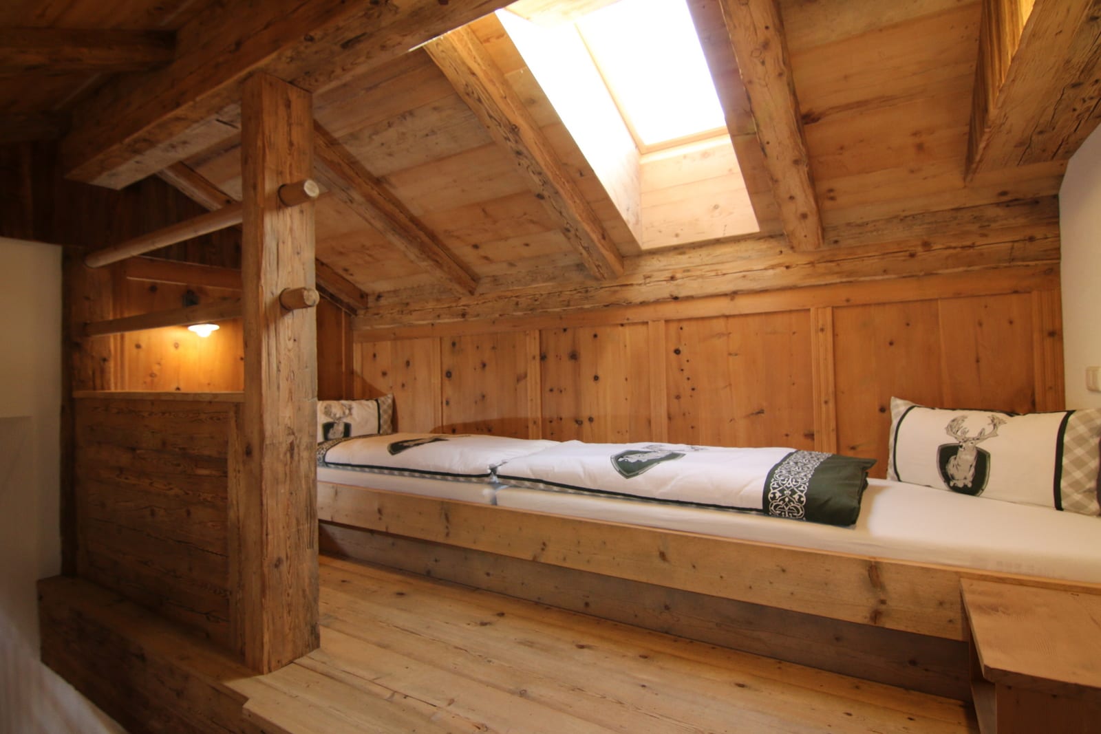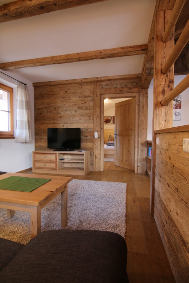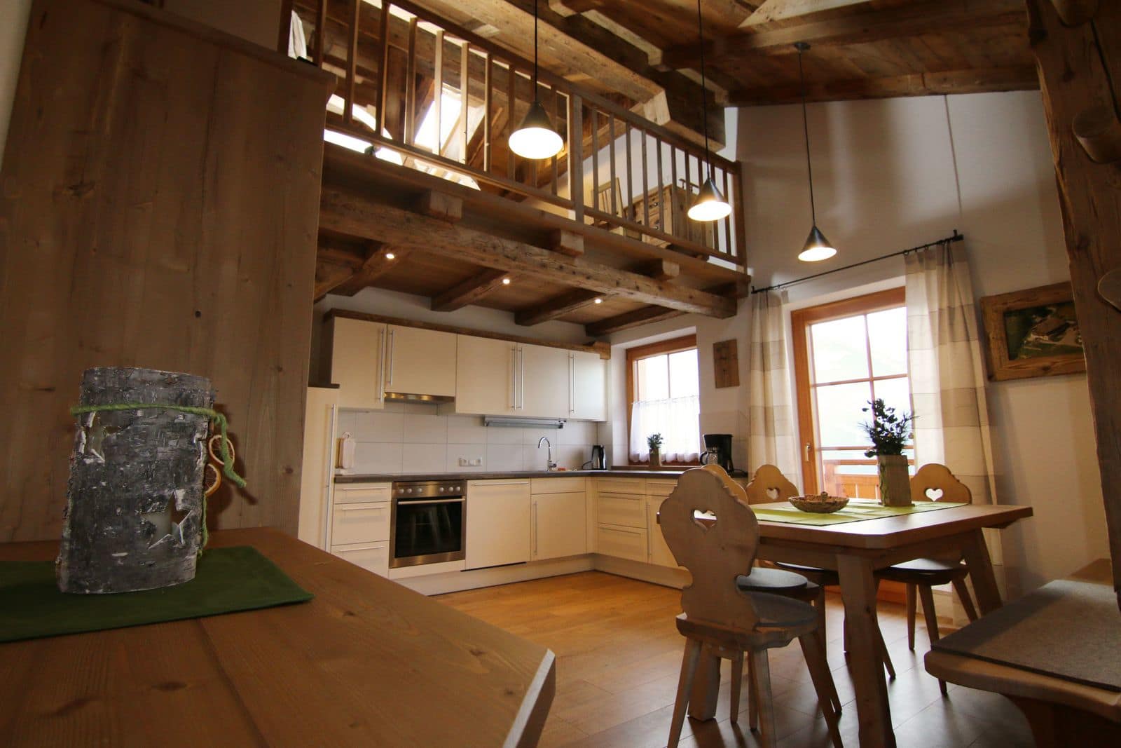 Unsere neuwertige Dachgeschoß-Wohnung besticht durch ihren Sichtdachstuhl, das harmonische Altholz und die hochwertige Einrichtung, die eine warme und einladende Atmosphäre schafft.
