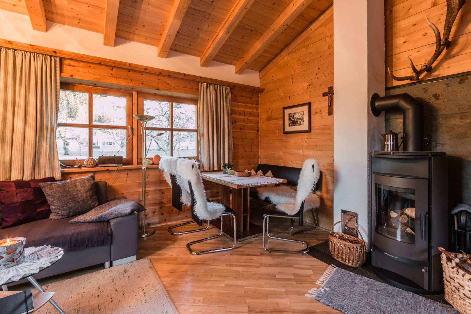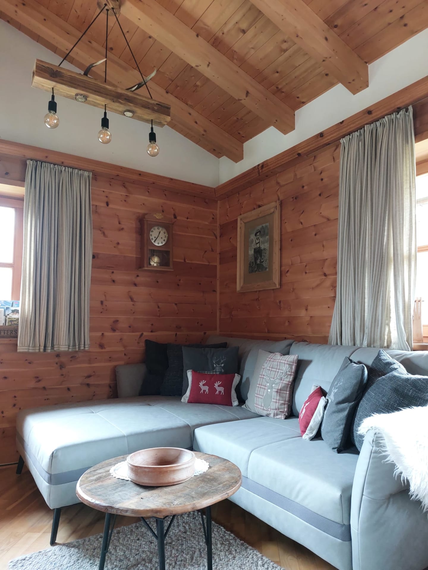 Auch der Wohnraum ist mit einer Zirbentäfelung versehen, bereits beim Eintreten ins Haus bemerkt man ihren angenehmen Duft.