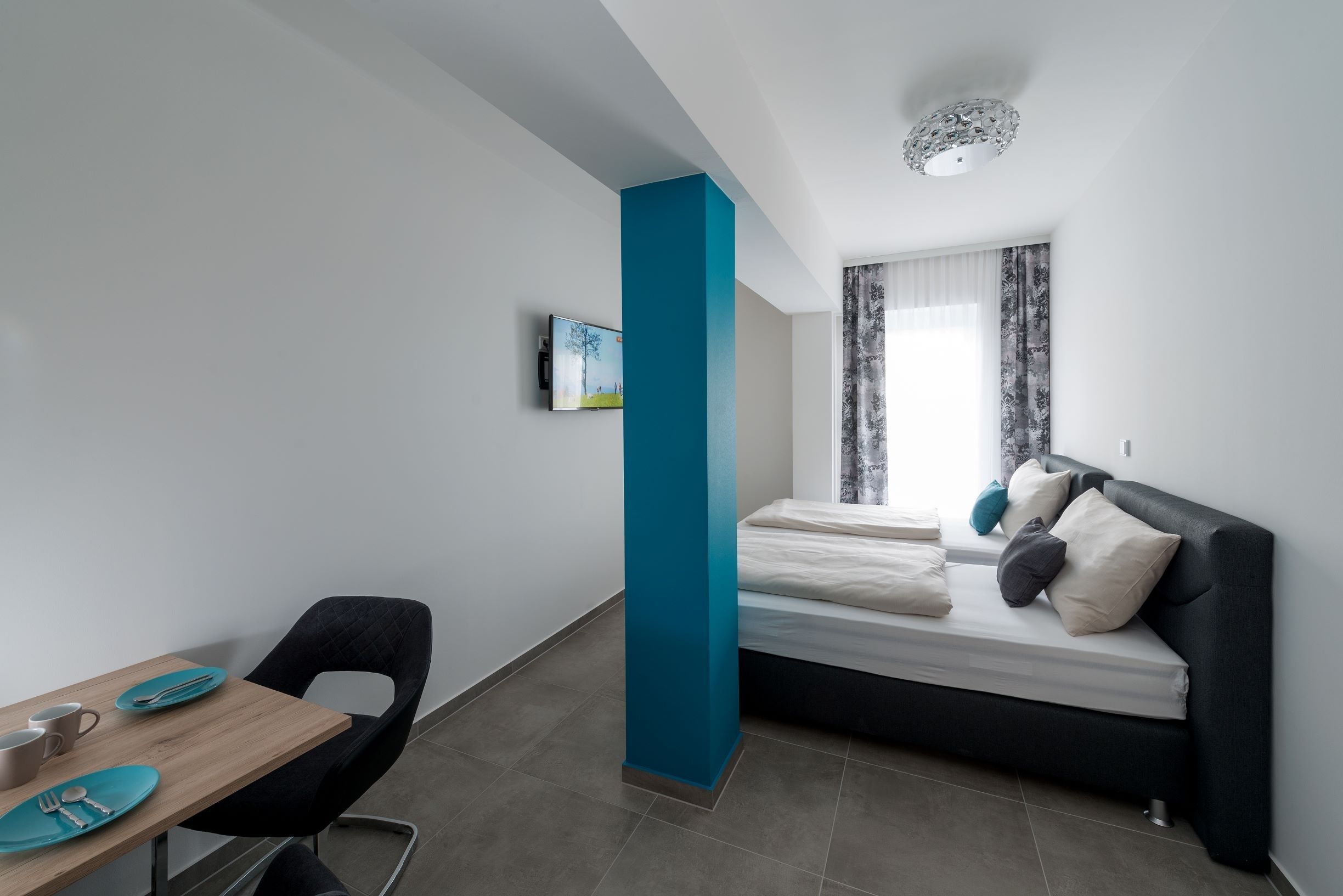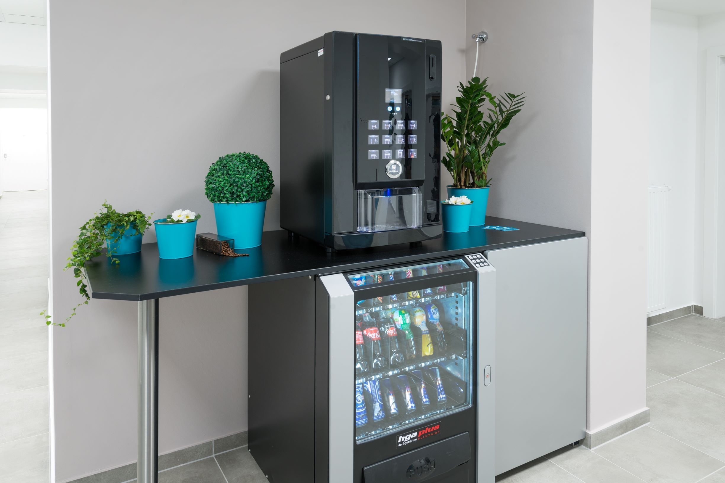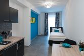 Moderne Apartments & Zimmer mit komfortablen Single oder Doppelbetten mit Klima, WIFI, Sat-TV, sorgen für einen perfekten Komfort auf Selbstversorgerbasis. Getränke & Snackautomat im Loungebereich.